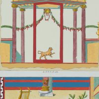 - Schlagworte: Pompeij, Herculaneum, Fresko, Antike, Fries, Ornament, römische Wandmalerei, antike Kultur, Klassizismus, Pompejanischer Stil, Tempel, Tempelarchitektur, Architektur, Italien, Neapel (Kampanien), Hund, Römisch, 1750-1799