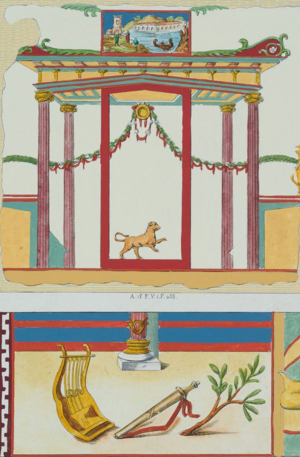 - Keywords: Pompeii, Herculaneum, fresco, antiquity, frieze, ornament, Roman mural, ancient culture, classicism, Pompeian style, temple, temple architecture, 18th century, Roman, Architecture, Italy, dog