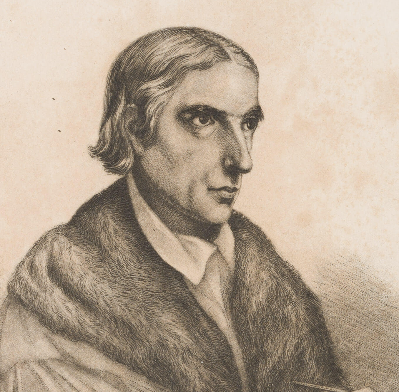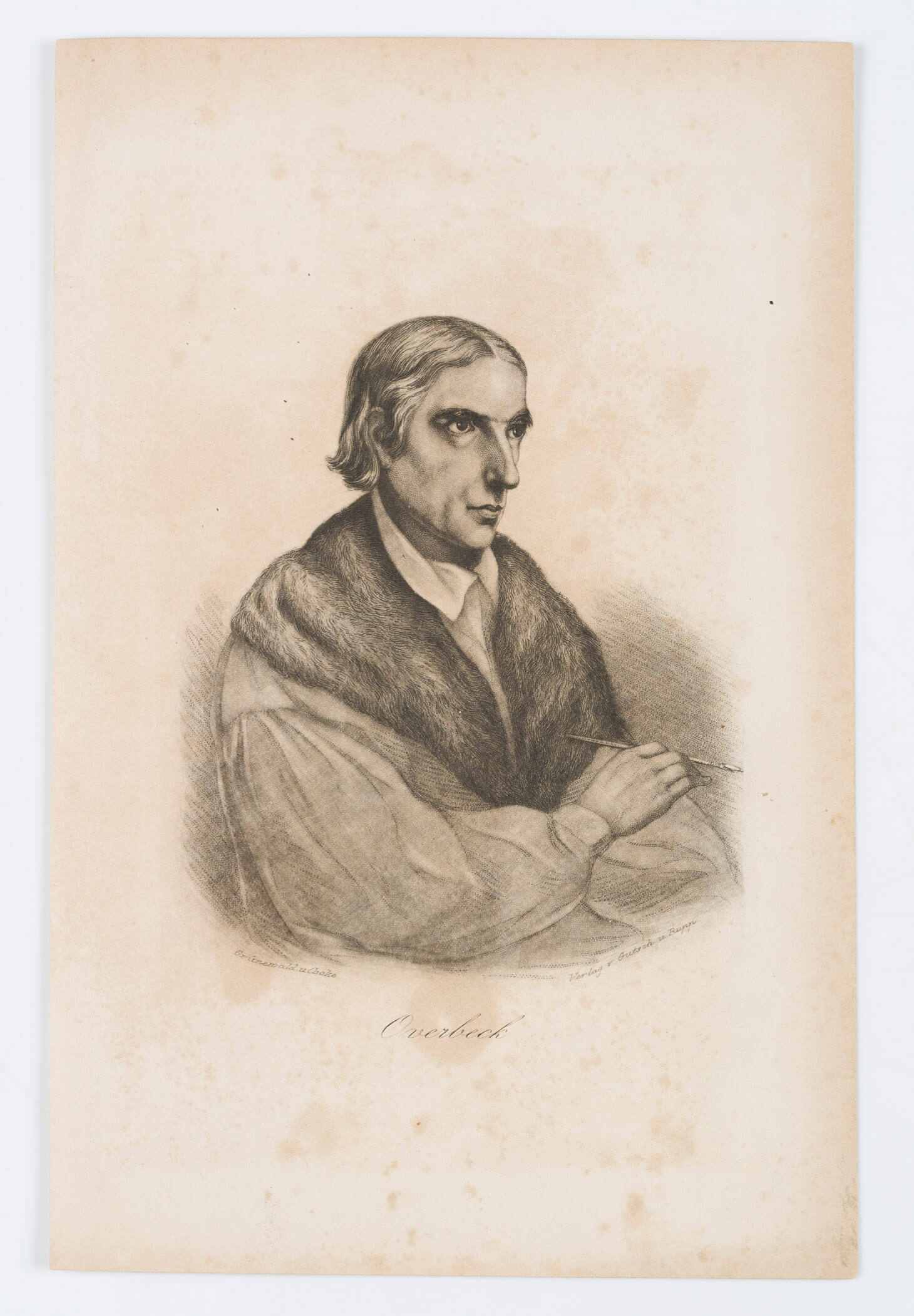 - Description: Stipple engraving with the bust of the painter Friedrich Overbeck.