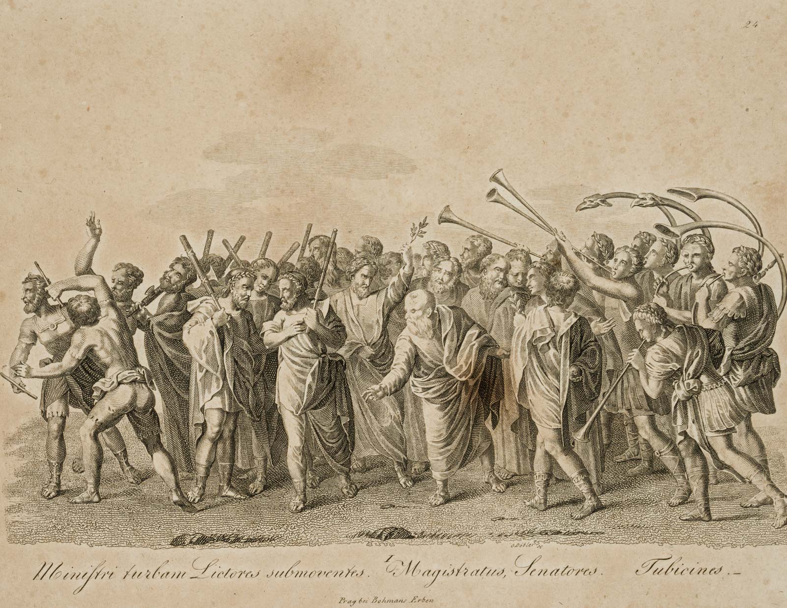Georg Döbler (1788 Prag – 1845 ebd.), Liktoren mit Fasces, “Ministri turbam Lictores submoventes.”, 19. Jahrhundert, Kupferstich