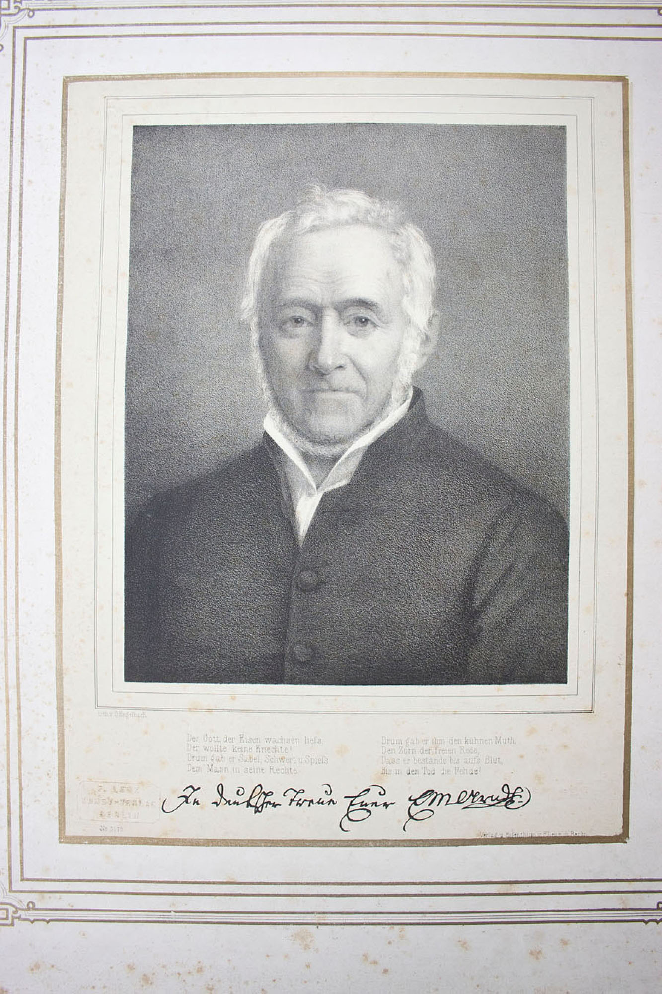 Georg Engelbach (1817 – 1894 ), Porträt des Ernst Mortiz Arndt, um 1850, Lithographie