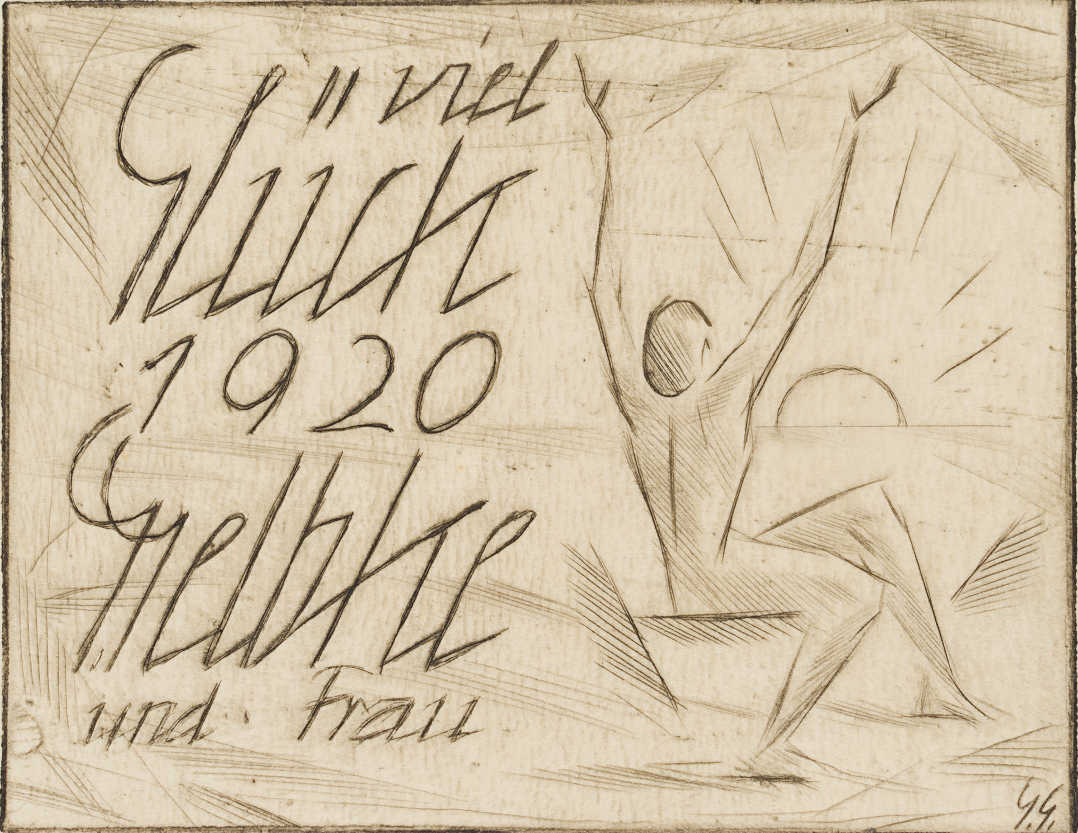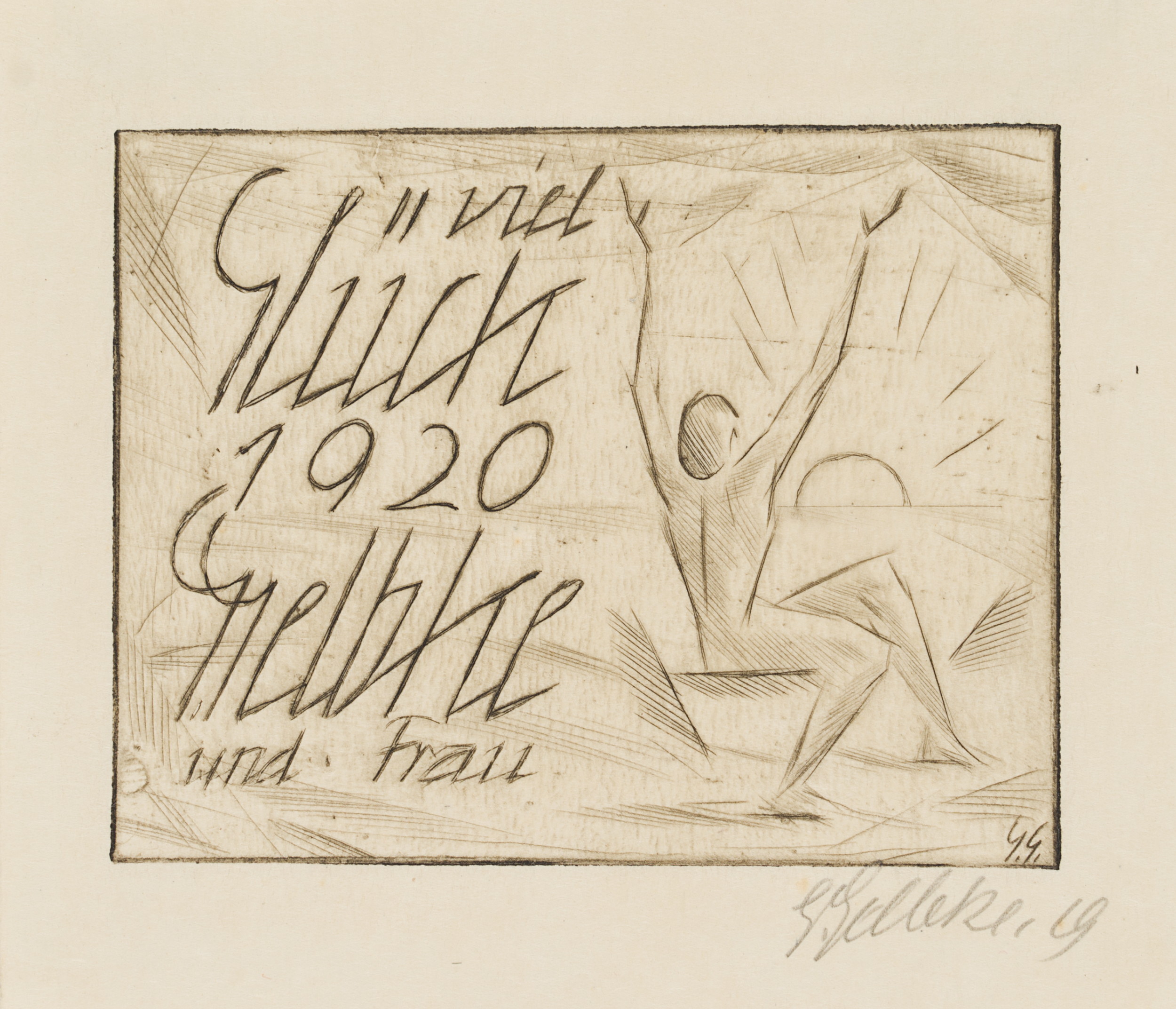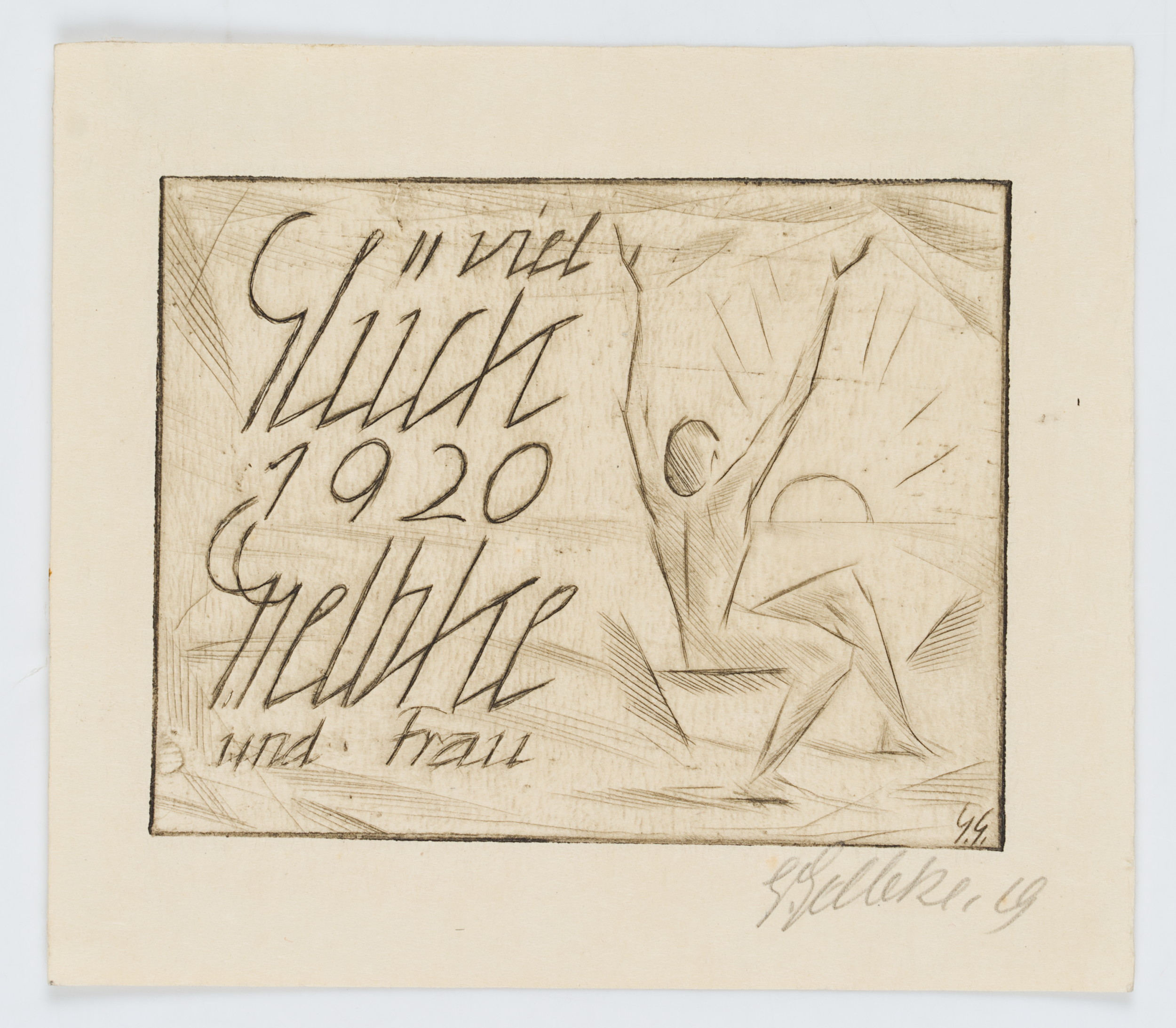 Georg Hermann Gelbke (1882 Rochlitz – 1947 Dresden), New Year’s greeting 1920, 1919, Etching