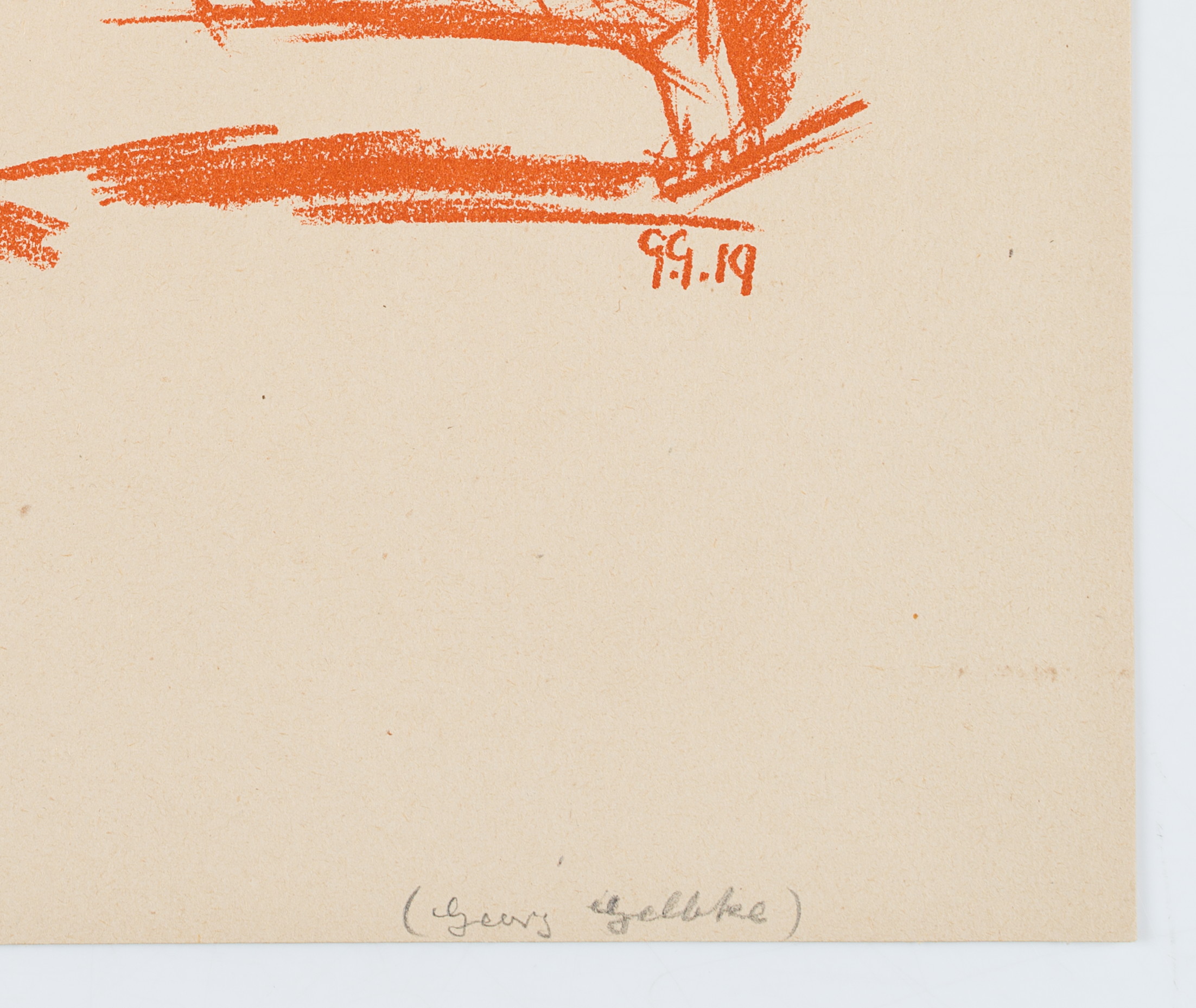 - Bezeichnung: Unten rechts im Druck signiert: “G.G.”. Unten rechts datiert: “19”.