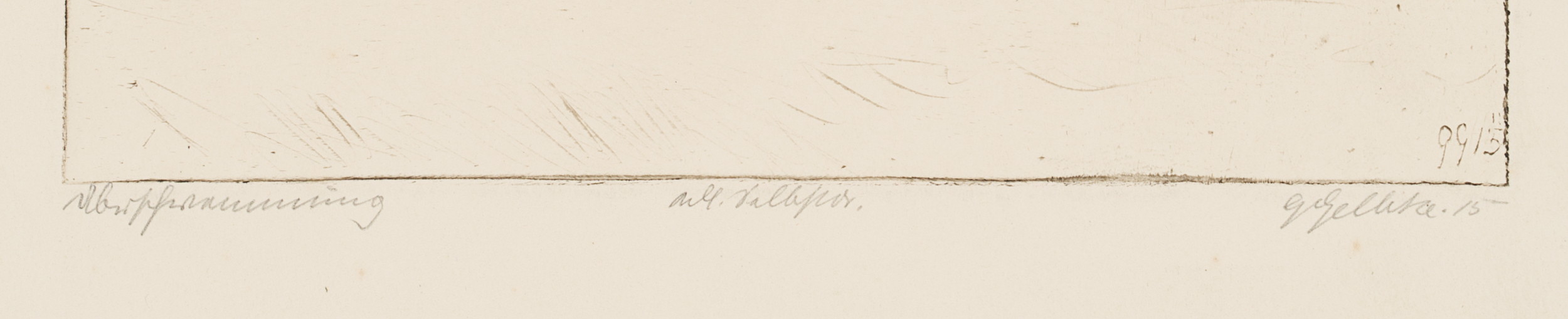 - Inscription: Lower right signed: “GGelbke”. lower left inscribed by the artist’s hand: “Überschwemmung”. Lower right dated: “15”.