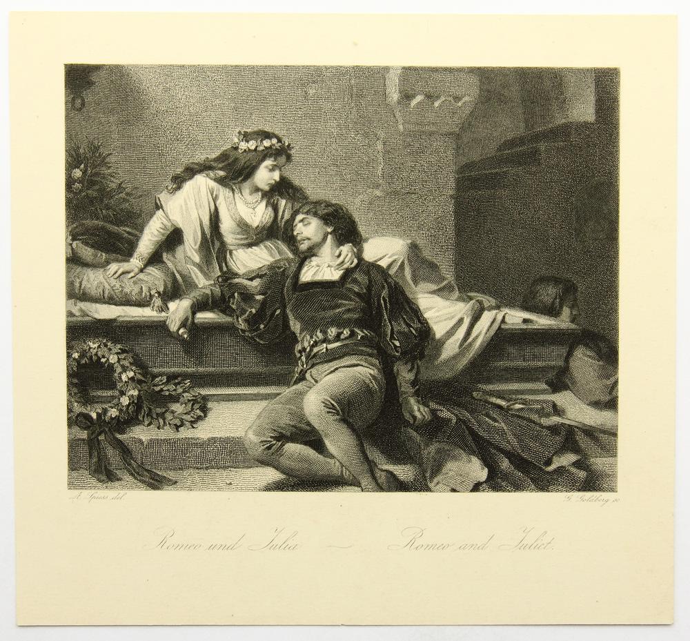 Georg Goldberg (1830 Nürnberg – 1894 München), Shakespeare: Romeos Tod, 19. Jahrhundert, Kupferstich