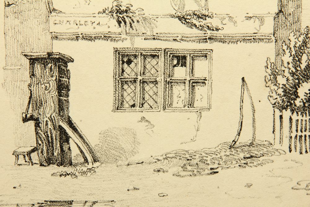 George Harley (1791 – 1871 ebd.), Ansicht eines Wohnhauses mit Brunnen, 19. Jahrhundert, Lithographie