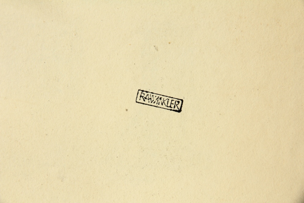 - Zustand: Guter Zustand. Insbesondere entlang der Blattkanten sind schwache Verschmutzungen und Verfärbungen des Papiers zu erkennen. Die linke Blattkante ist unbeschnitten und mehrfach durch Knicke und minimale Randeinrisse beschädigt. Zusätzlich befinden sich am linken Rand drei punktförmige Löcher im Papier. Die Blattecken sind leicht bestoßen und teils geknickt.
