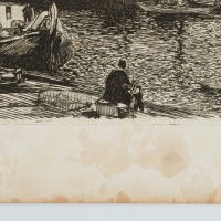 - Inscription: lower left signed in the printing plate: “G de Latenay”. Lower middle inscribed in the printing plate: “Zeitschrift für bildende Kunst 1906 | Hafen von Antwerpen Originalradierung von Gaston de Latenay”.