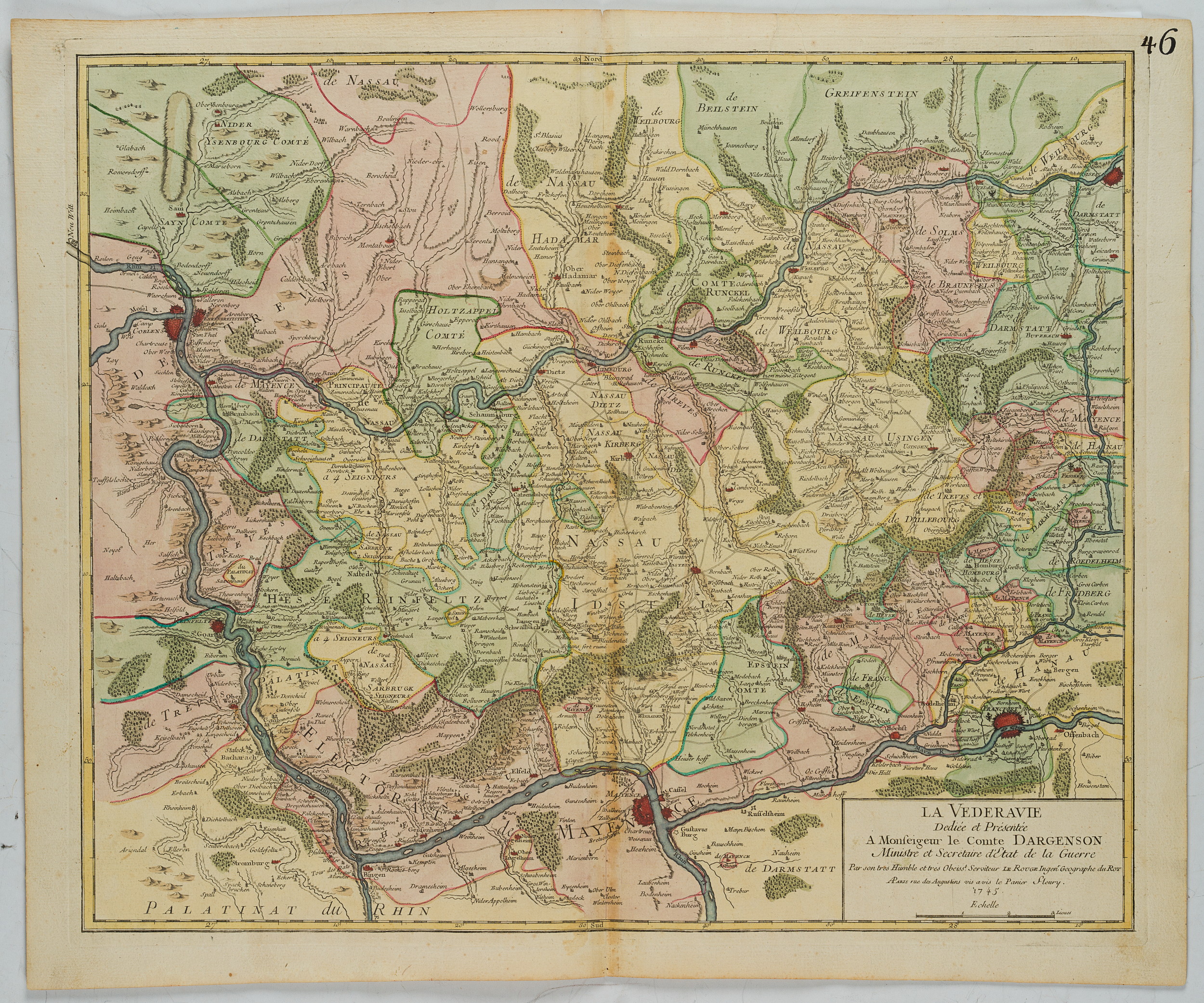 G. LE ROUGE (1712-1790), Landkarte der Wetterau, Hessen, 1745, Klassizismus