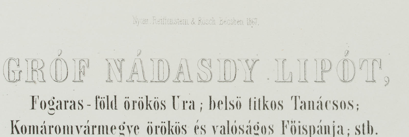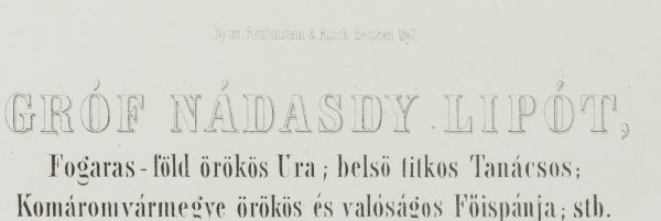 - Inscription: Signed by hand and dated “Marastoni 1867” on the left below the image, inscribed with the sitter’s name “Gróf Nádasdy Lipót” below. Numbered “1215” on the verso and illegibly inscribed with the name of the collection.