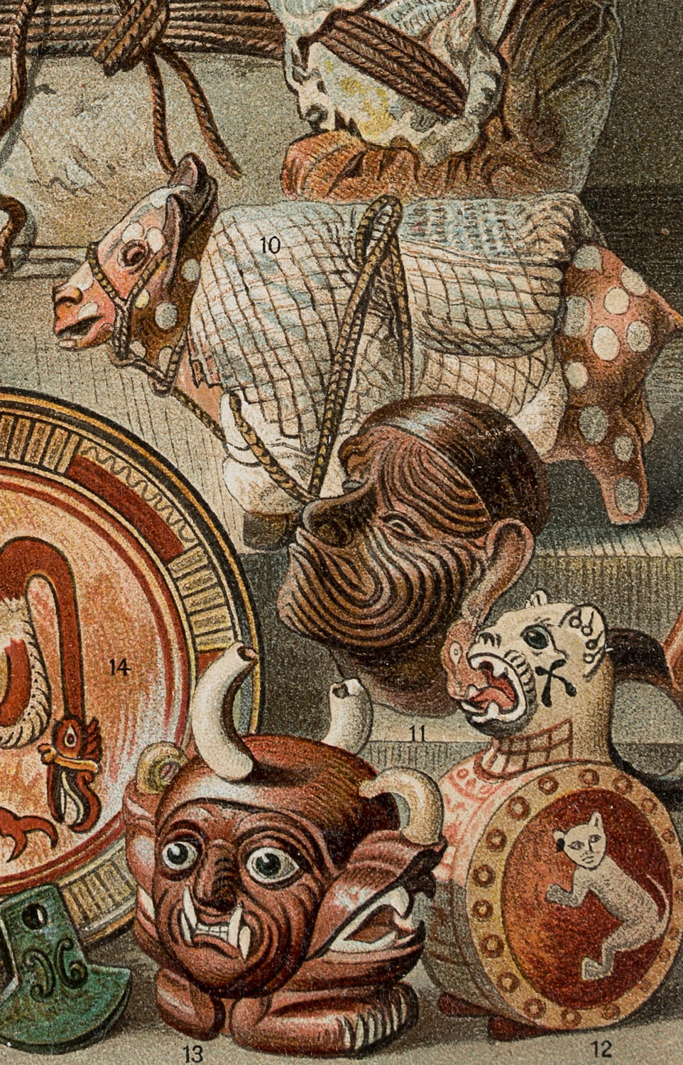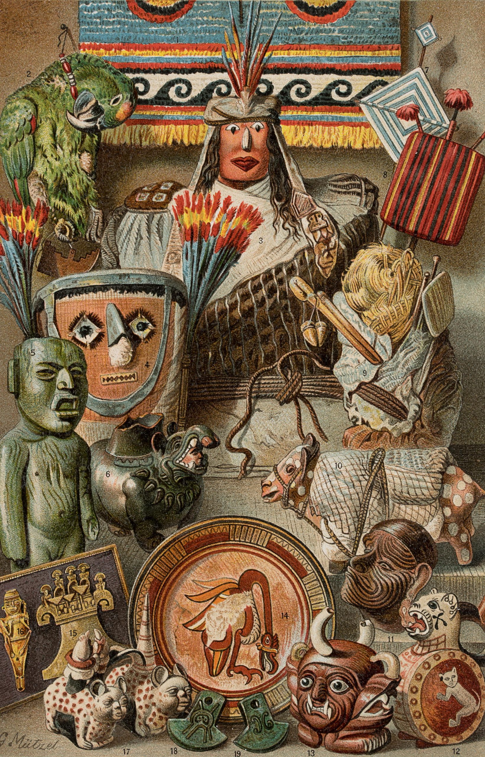 Gustav Mützel (1839 Berlin – 1893 ebd.), Ethnographische Sammlung Amerikanischer Kultur, um 1893, Chromolithographie