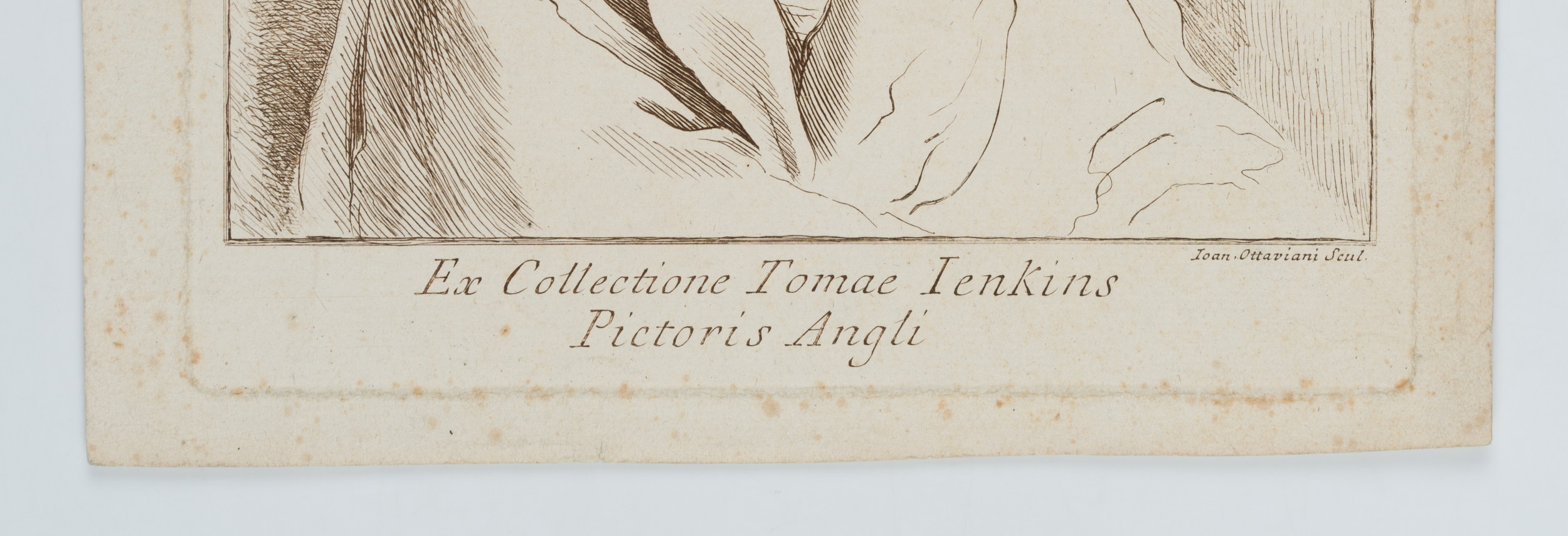 - Inscription: Lower right signed in the printing plate: “Ioan Ottaviani Scul.”. Lower middle inscribed in the printing plate: “Ex Collectione Tomae Ienkins Pictoris Angli”.