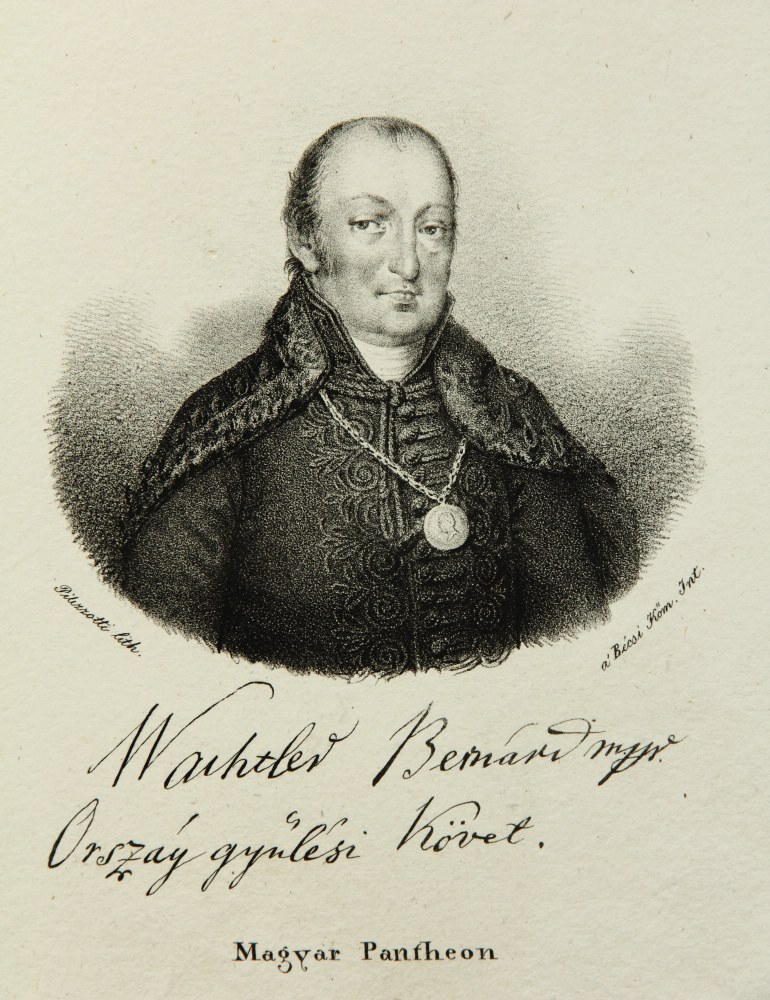 - Beschreibung: Giacomo PILIZOTTI (19. Jahrhundert, Istrien), Porträt eines ungarischen Gesandten, “Wahtler Bernárdmyr[?] Orszáy gynlési Követ”, Lithographie. Beschreibung: Lithographie auf Papier. Unterhalb der Darstellung in Stein signiert und im Druck mit mutmaßlicher Unterschrift und Amtsbezeichnung des Dargestellten versehen. Teil der ungarischen Zeitschriftenreihe Magyar Pantheon.