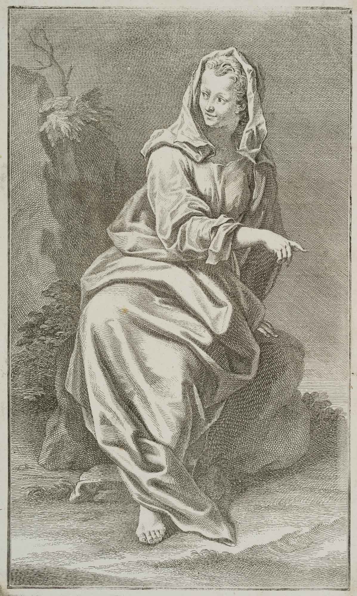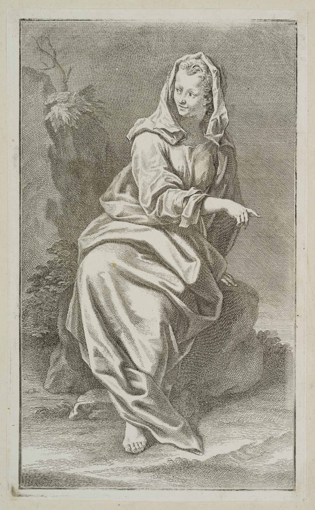 Georg Martin Preißler (1700 Nuremberg – 1754 ibid.), Seated female robed figure, 18th century, Copper engraving