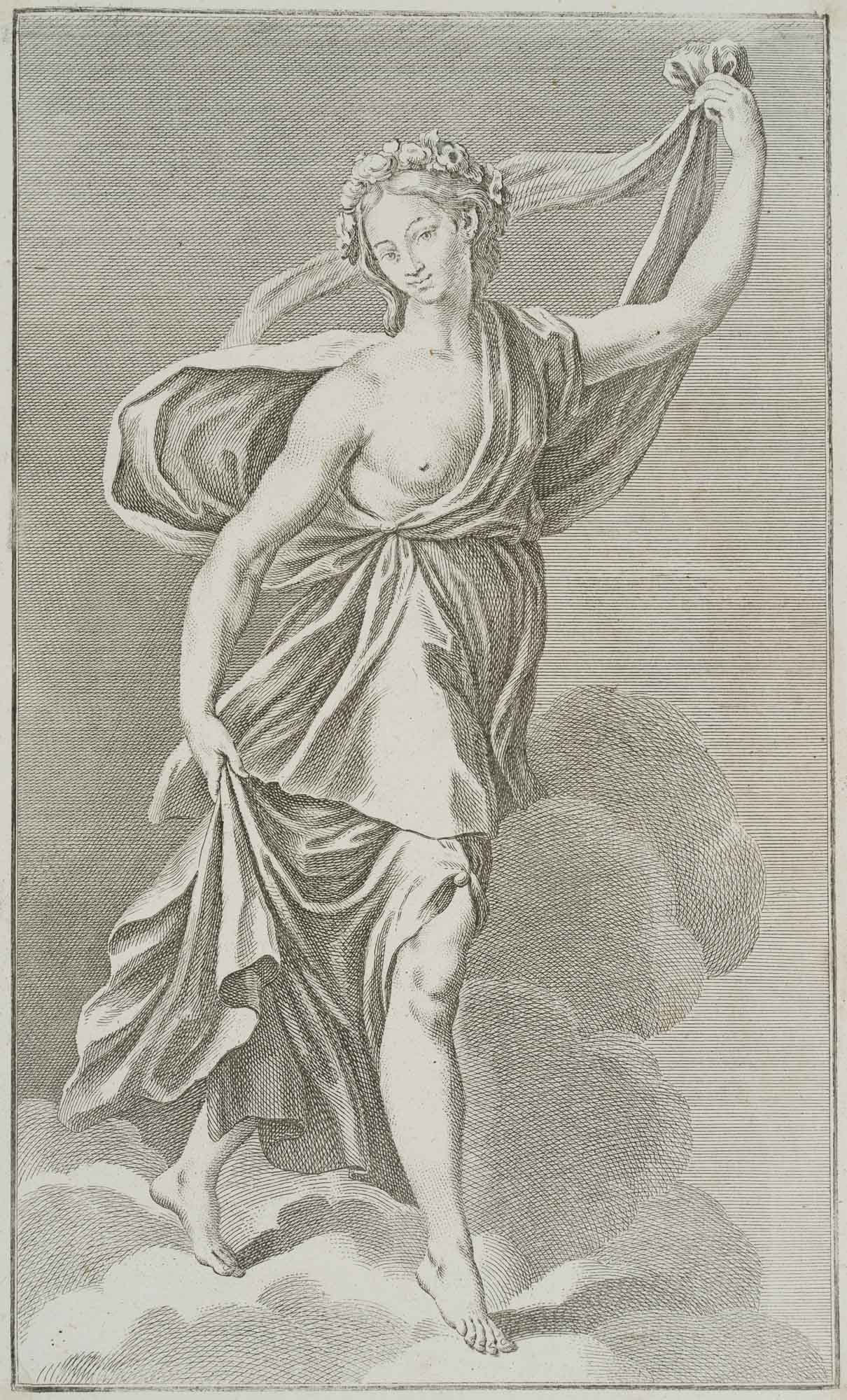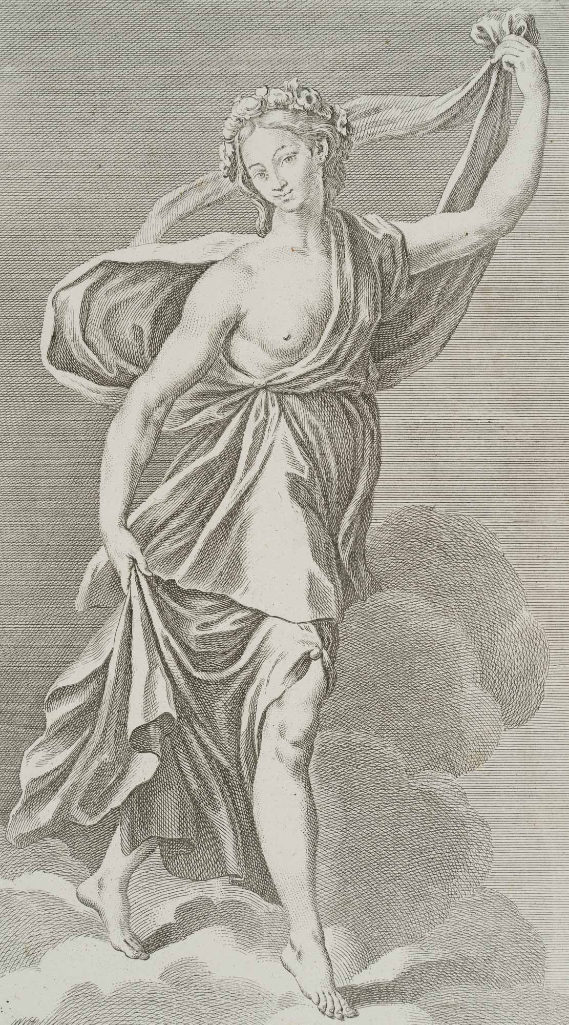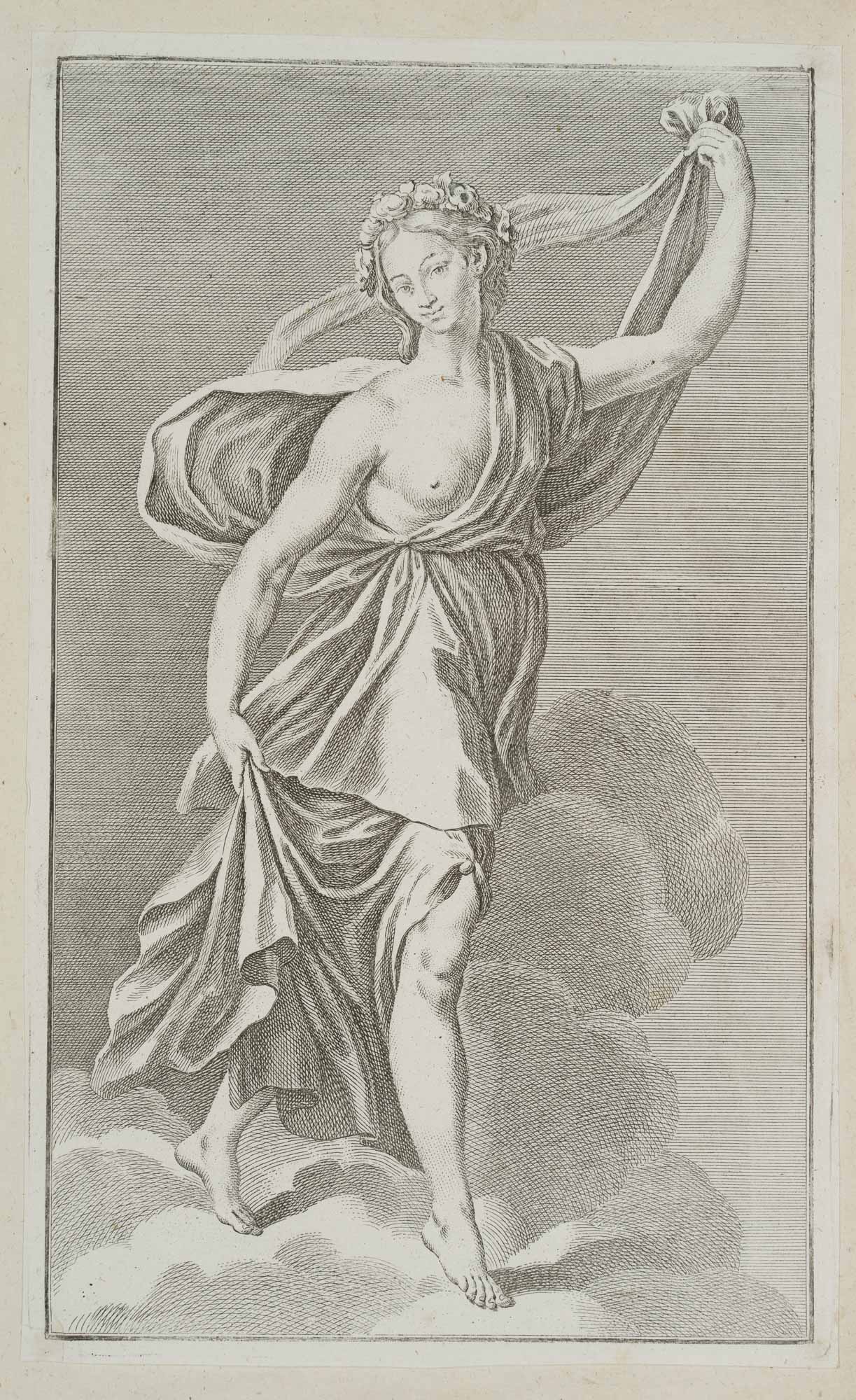 Georg Martin Preißler (1700 Nürnberg – 1754 ebd.), Weibliche Gewandfigur mit Blumenkranz, 18. Jahrhundert, Kupferstich