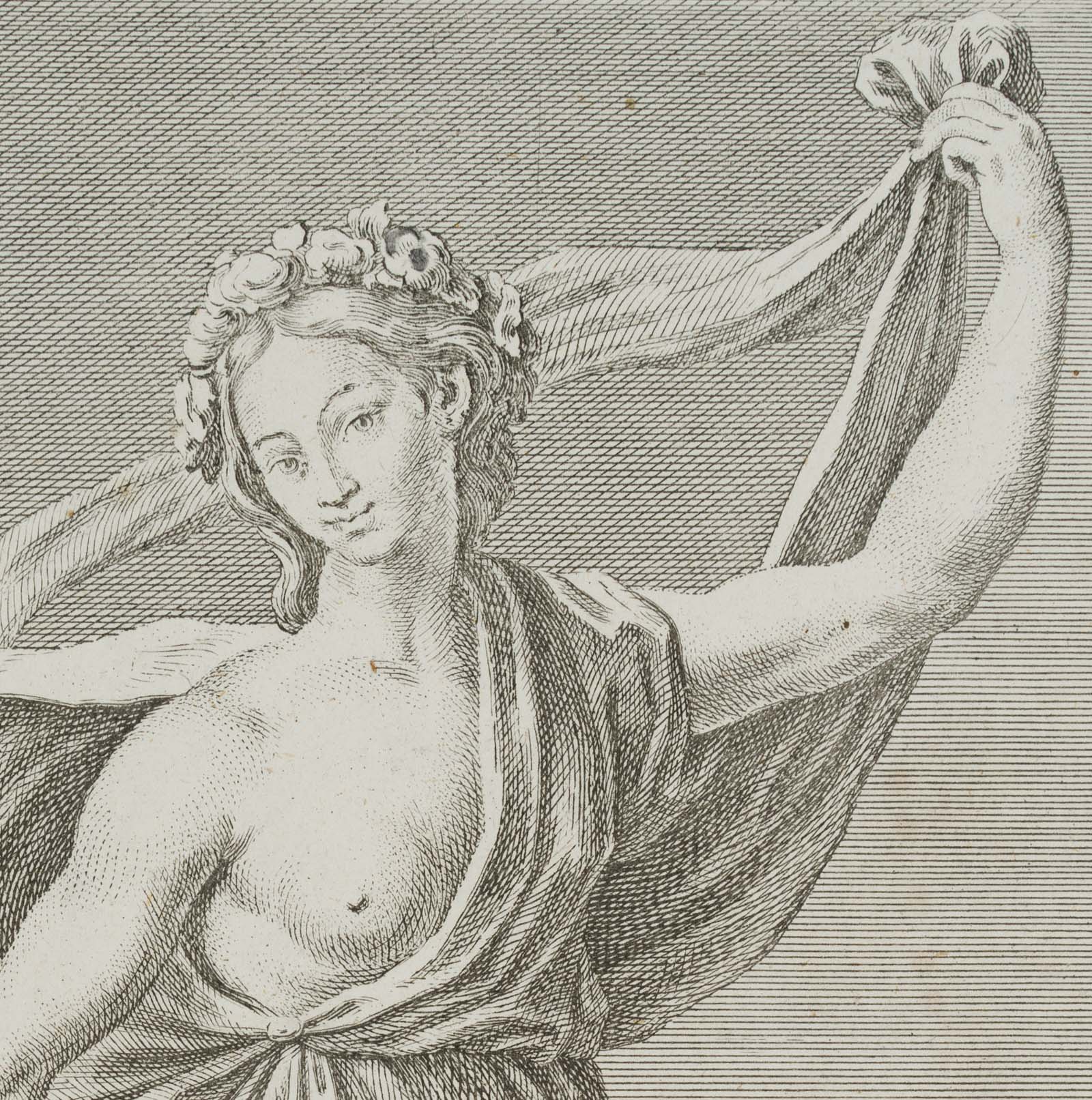 Georg Martin Preißler (1700 Nuremberg – 1754 ibid.), Female robed figure with floral wreath, 18th century, Copper engraving