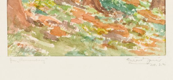 - Description: Inscribed, signed and dated on the lower margin of the mount. From a folder with watercolours, drawings and studies by Gerhard Sauer with views of nature and landscapes of different seasons from the southern German region of Baden-Württemberg: Near Tiefenbach, Hartfeld, Schönmünz, Leimiß. Mostly the artist shows idyllic views of small villages with farms and church tower silhouettes, embedded in hilly natural landscapes. The dramatic events of the forties do not appear in Sauer’s work. Please note our other offers.
