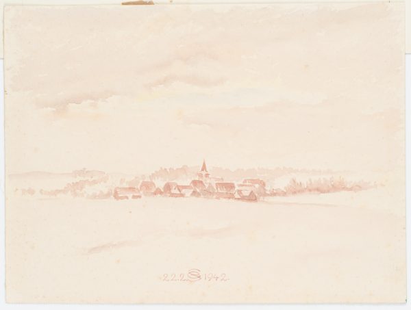 Gerhard Sauer (20th century), SAUER, View of a village landscape from a distance, 1942, , Watercolor