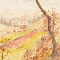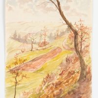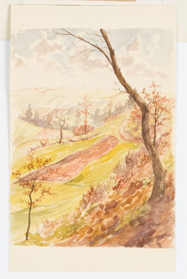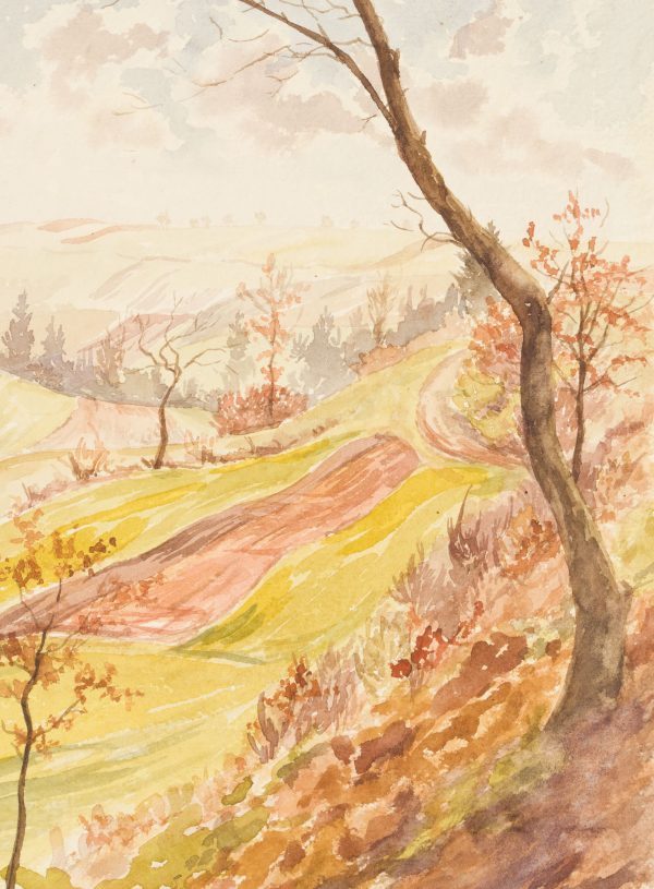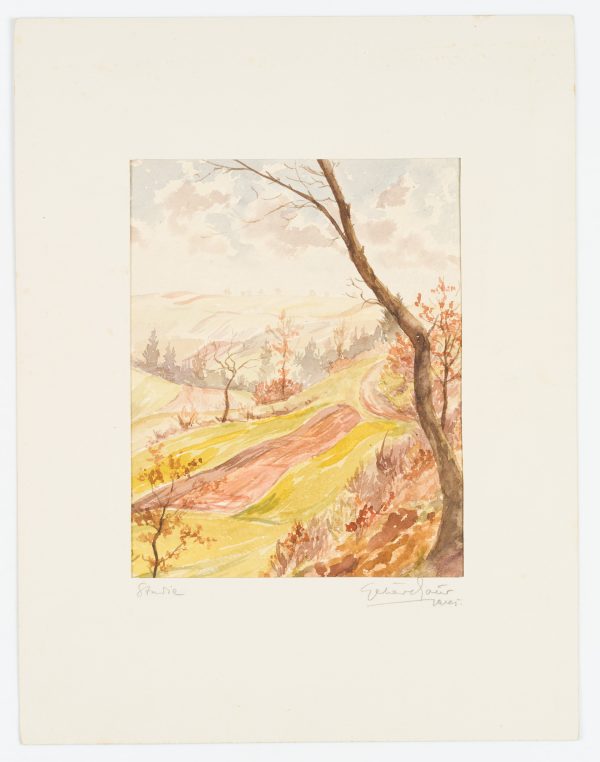 Gerhard Sauer (20th century), SAUER, Sunny autumn landscape with hilly meadows, 1941, , Watercolor