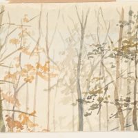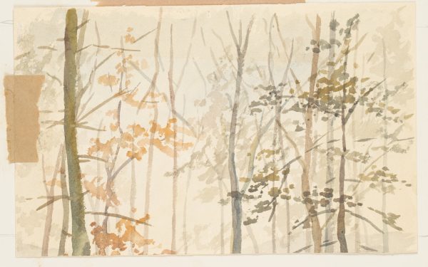 - Description: Inscribed on the front left of the mount and signed and dated on the right. On the reverse with forest study, piece of forest. From a folder with watercolours, drawings and studies by Gerhard Sauer with views of nature and landscapes of different seasons from the southern German region of Baden-Württemberg: Near Tiefenbach, Hartfeld, Schönmünz, Leimiß. Mostly the artist shows idyllic views of small villages with farms and church tower silhouettes, embedded in hilly natural landscapes. The dramatic events of the forties do not appear in Sauer’s work. Please note our other offers.
