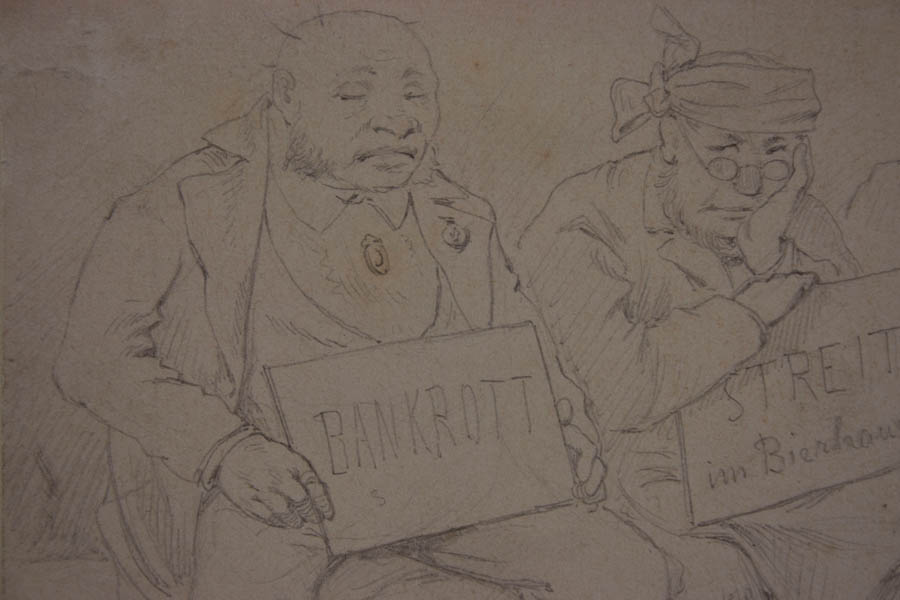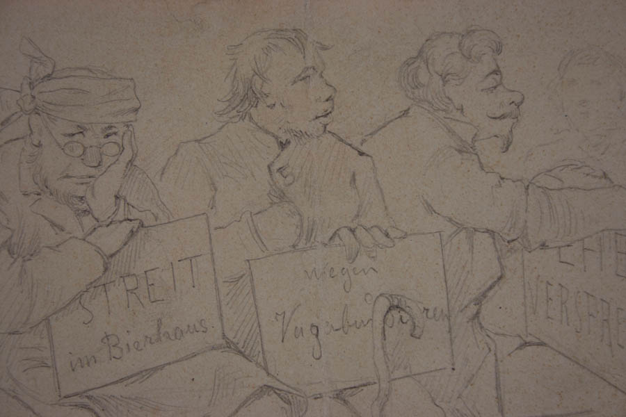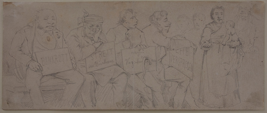 - Bezeichnung: Rechtsangelegenheiten. Die Zeichnung stammt aus einer Sammlung, in deren Kontext sie Guido Schmitt zugeschrieben wurde.