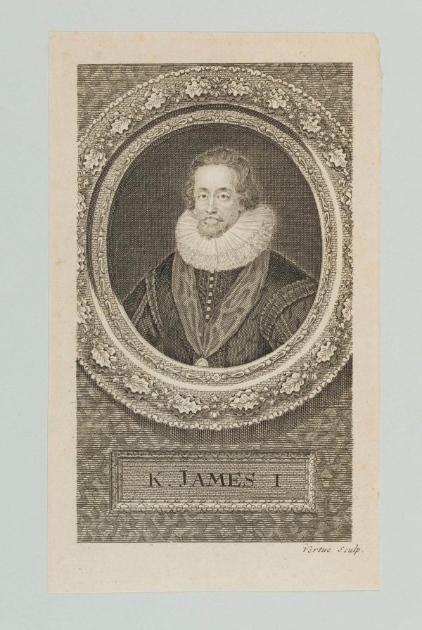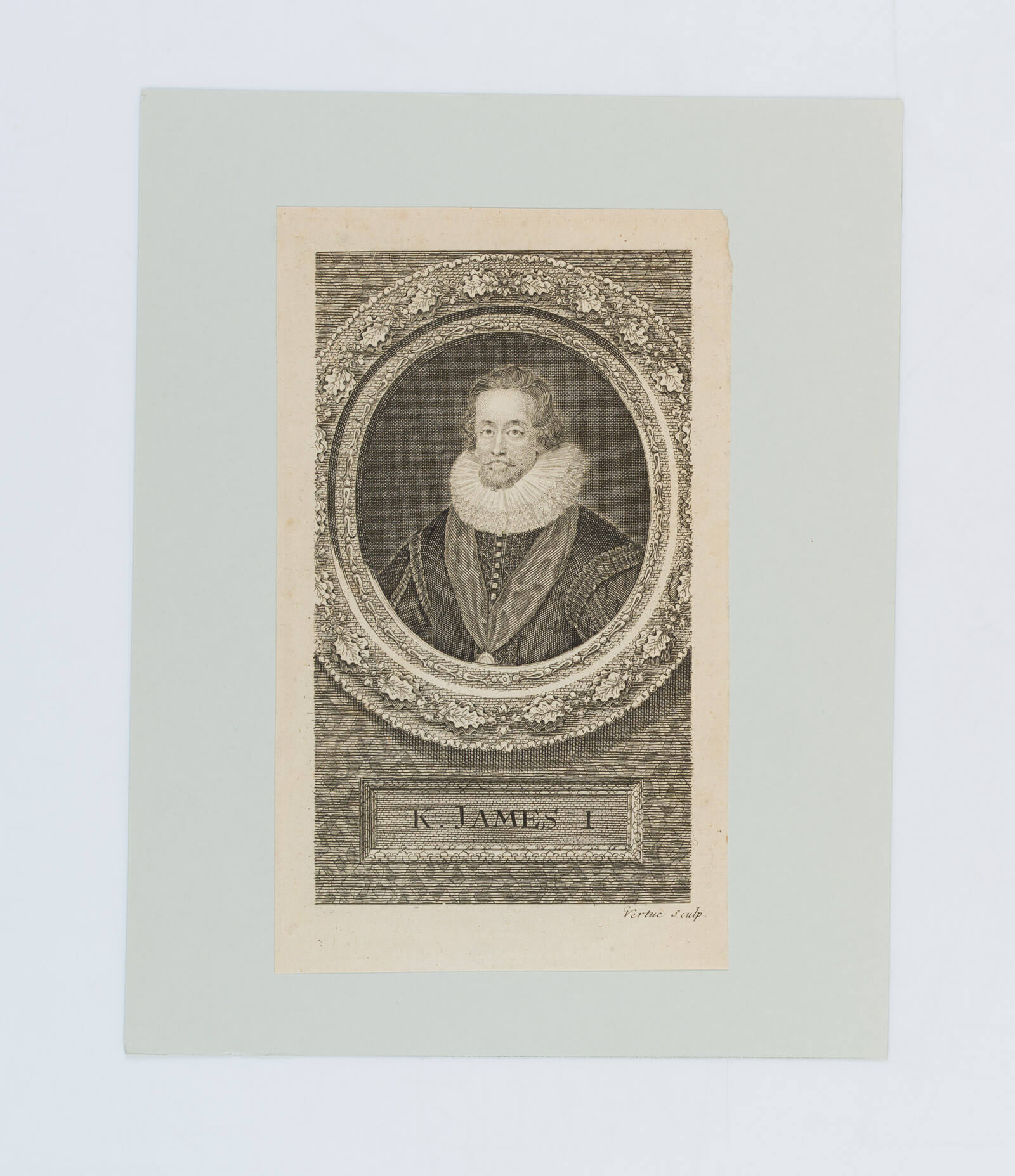 George Vertue (1684 London – 1756 ibid.), Portrait of King James I, James I, c. 1720, Copper engraving