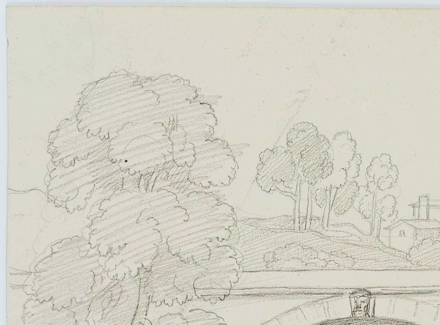 George Augustus Wallis (1761 Merton (London) – 1847 Florence), Italian landscape with stone bridge and farmstead, 19th century, Pencil