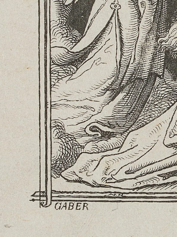 - Inscription: At the lower part signed in the printing plate: “LR / Gaber”.