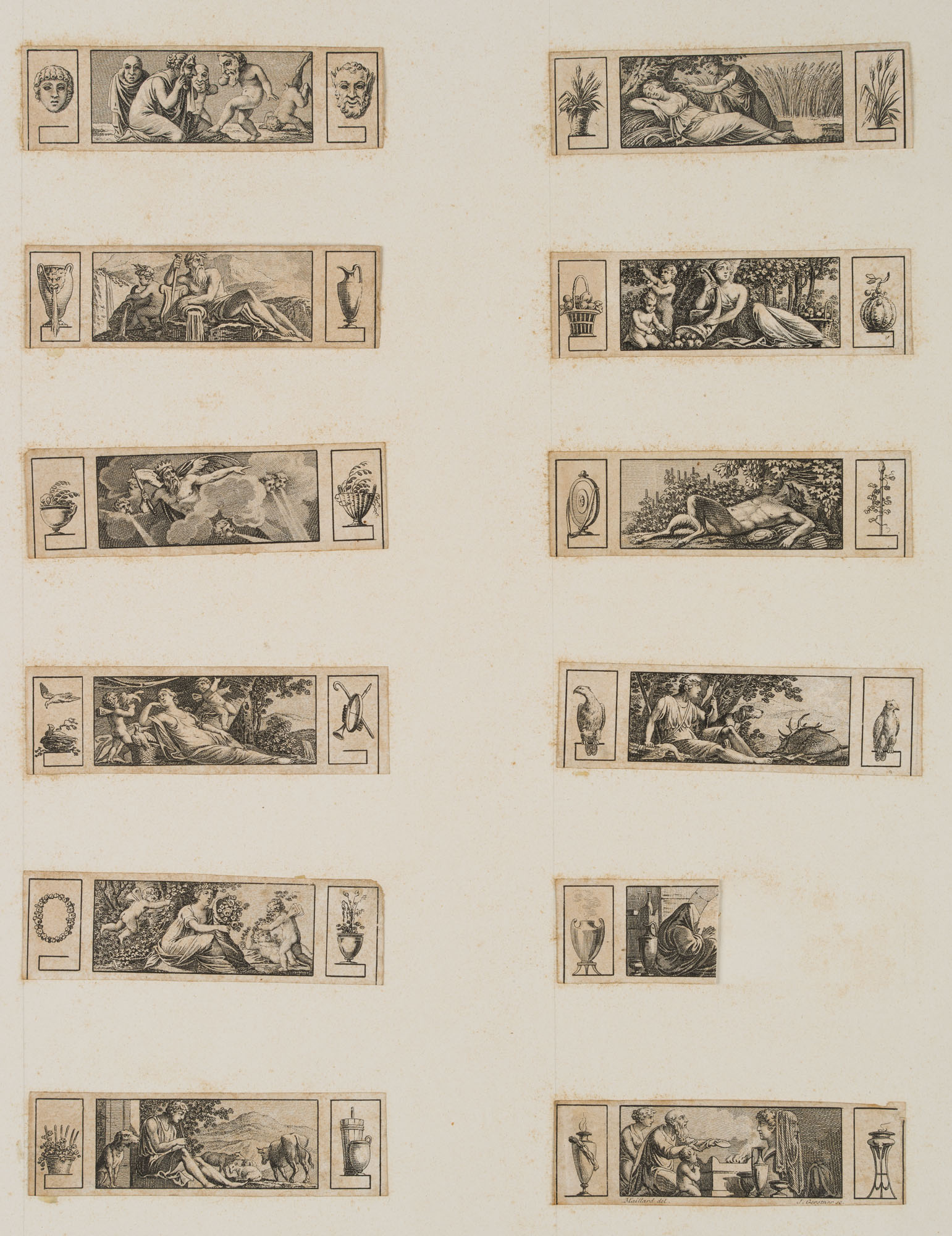 - Beschreibung: Unter der untersten Graphik rechts signiert mit “Maillard del” und “J Gerstner sc.”. Rückseitig jeweils mit dem entsprechenden Namen des Monats versehen.