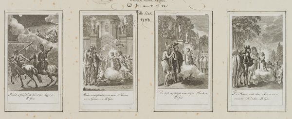 Christian Gottlieb Geyser (1742 Görlitz – 1803 Leipzig) nach Daniel Nikolaus Chodowiecki (1726 Danzig – 1801 Berlin), 12 Graphiken mit literarischen Darstellungen aus der Sage des ‘Oberon’, dem Elefenkönig, 13. Jh., 1782, Kupferstich