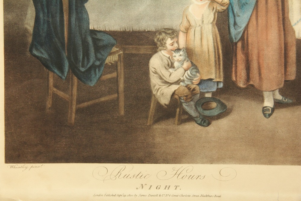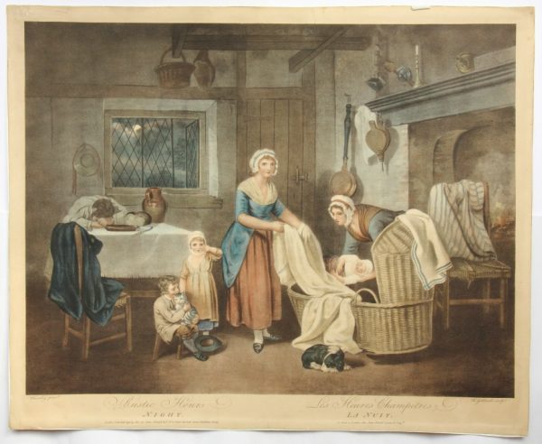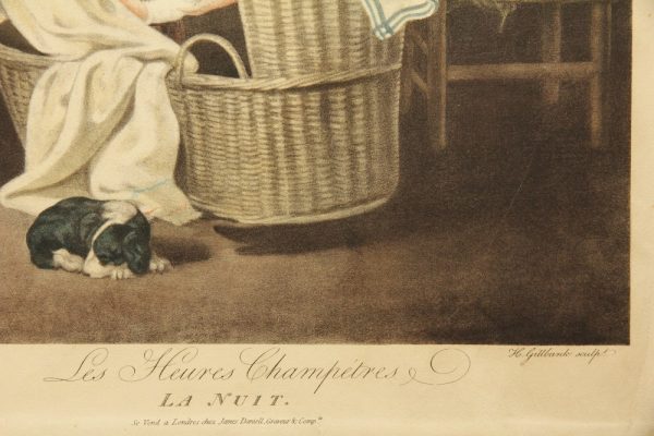 - Description: Haveill GILLBANK (19th century, Great Britain) after Francis Wheatley’s (1747 London – 1801 ibid. ) series Rustic Hours , The Night, Going to bed at night in a peasant’s parlour, mezzotint. Description: Mezzotint on strong paper. Signed in print below the image and inscribed in English and French. Below inscribed with publisher’s data and date of publication 1800.