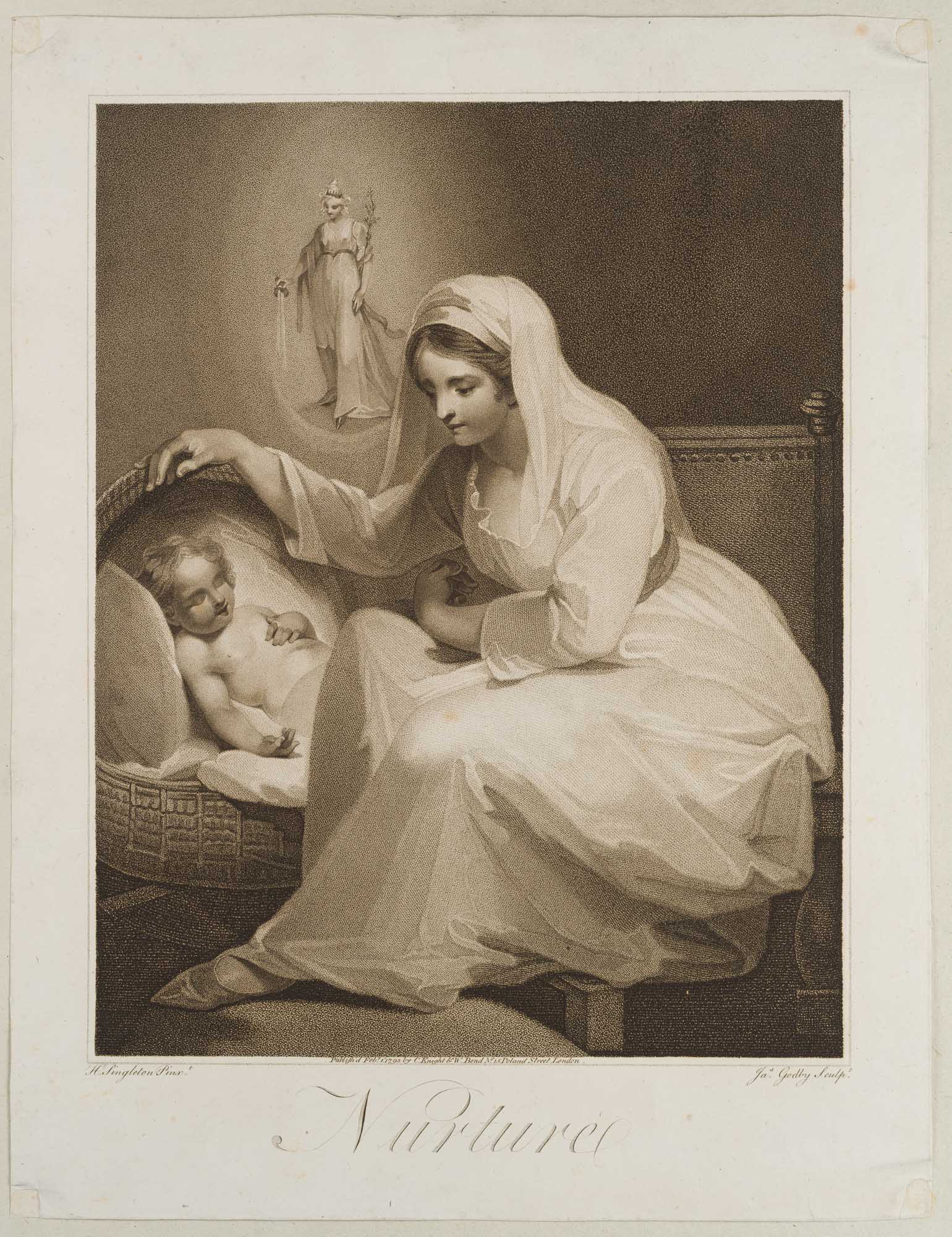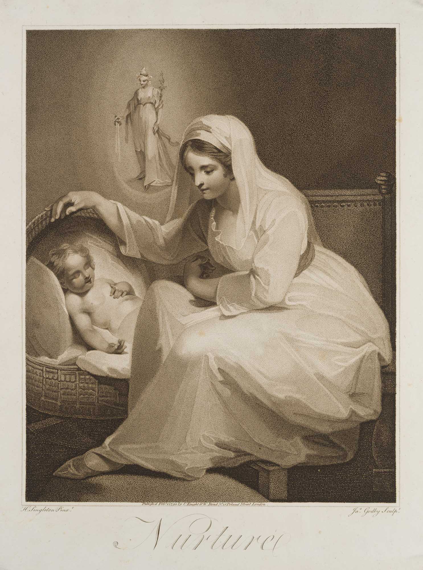 James Godby (1790 – 1815 ) after Henry Singleton (1766 – 1839 ), Nurture, mother with sleeping child, 1793, Crayon manner