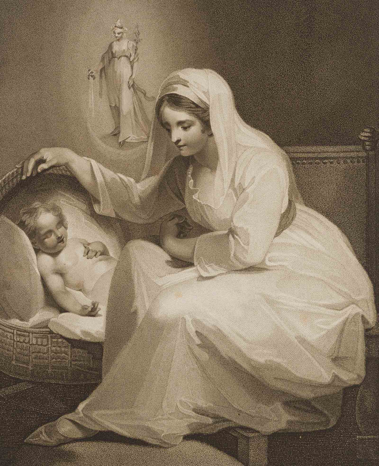 James Godby (1790 – 1815 ) nach Henry Singleton (1766 London – 1839 Kensington), Nurture, Mutter mit schlafendem Kind, 1793, Crayonmanier