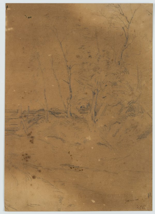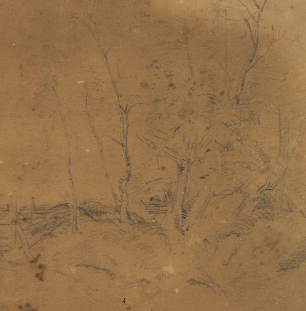 Gorland (19. Jahrhundert), Waldstück mit Bäumen und Zaun, 19. Jahrhundert, Bleistift