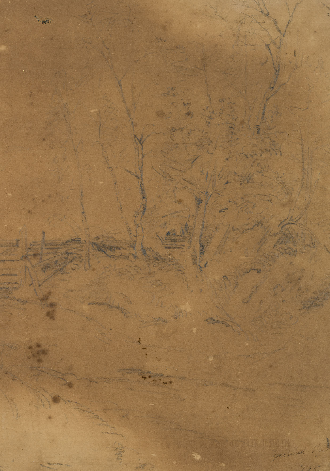 Gorland (19th century), Woodland with trees and fence, 19th century, Pencil