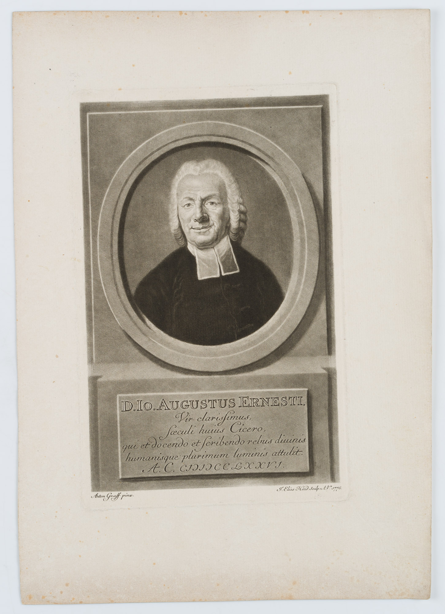 Anton Graff (1736 Winterthur – 1813 Dresden) nach Johann Elias Haid (um 1737 Augsburg – 1809 ebd.), HAID; GRAFF, Portrait d. Theologen Johann August Ernesti, 1776, 1776, Mezzotinto