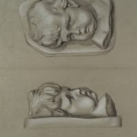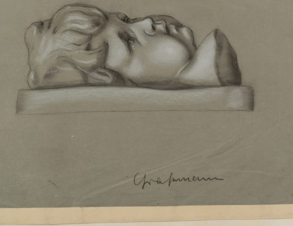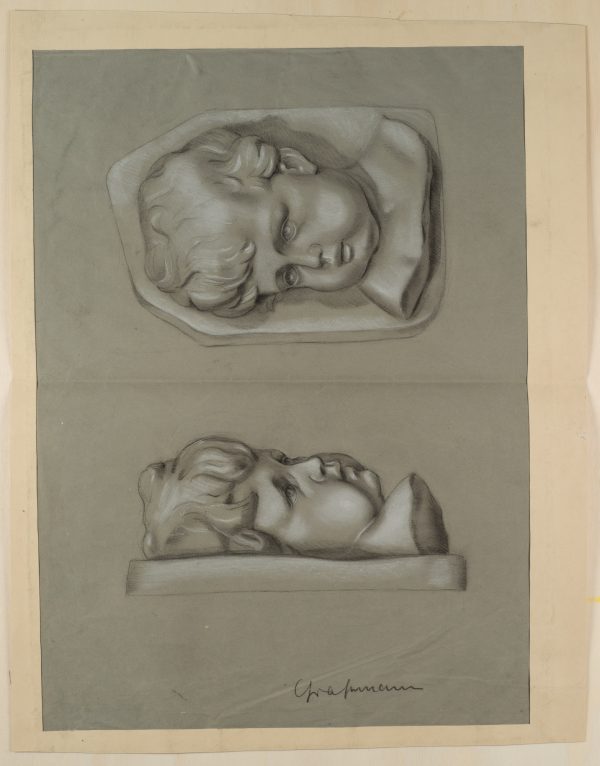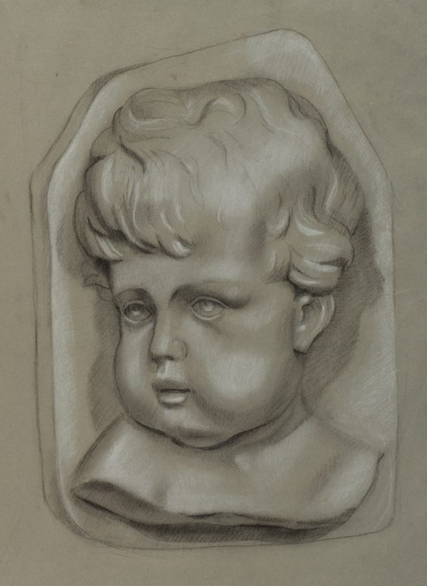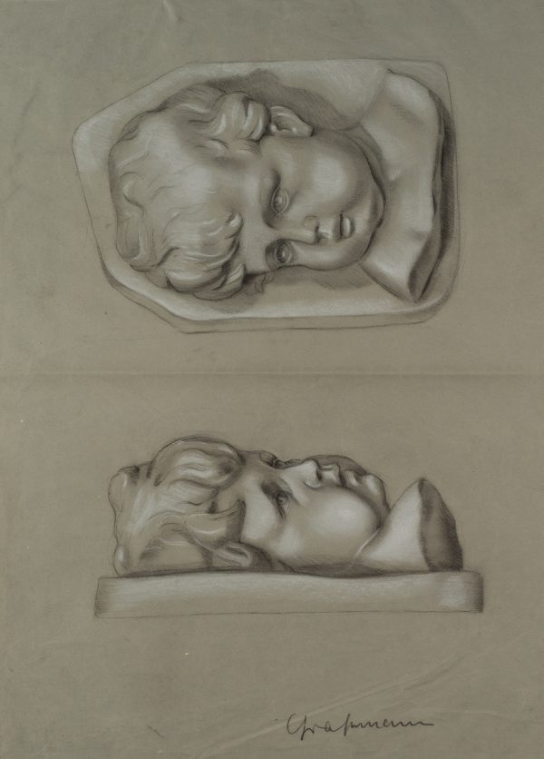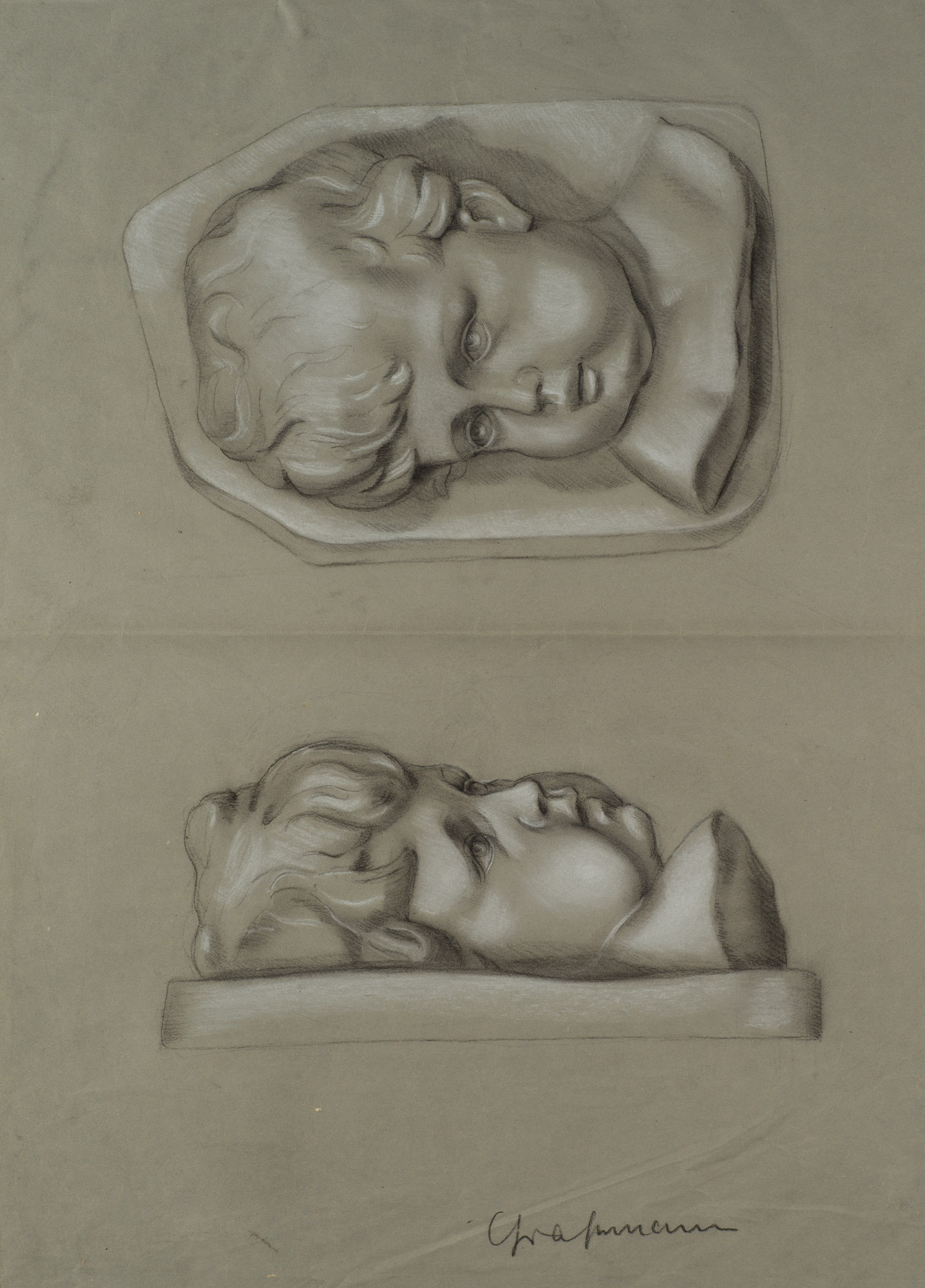 Grafmann (20. Jahrhundert), Übungsstudie eines Puttenkopfes als Relief, , Bleistift