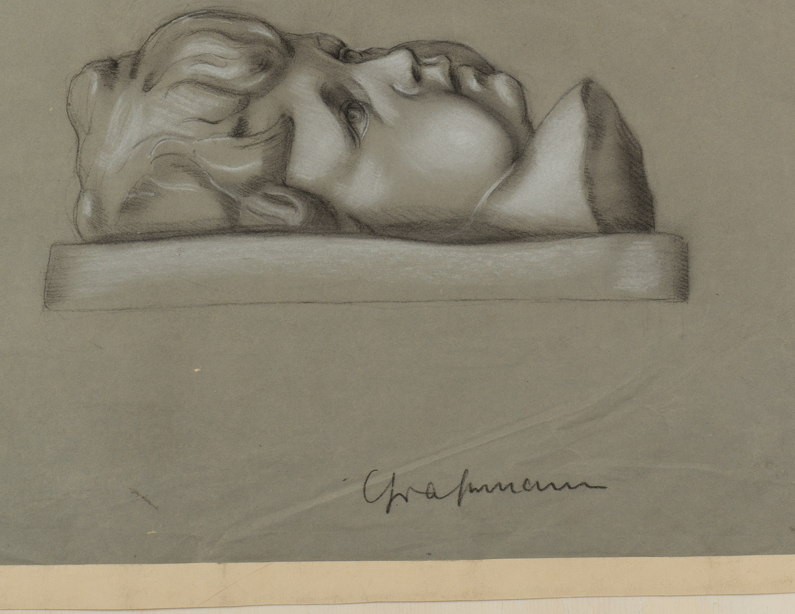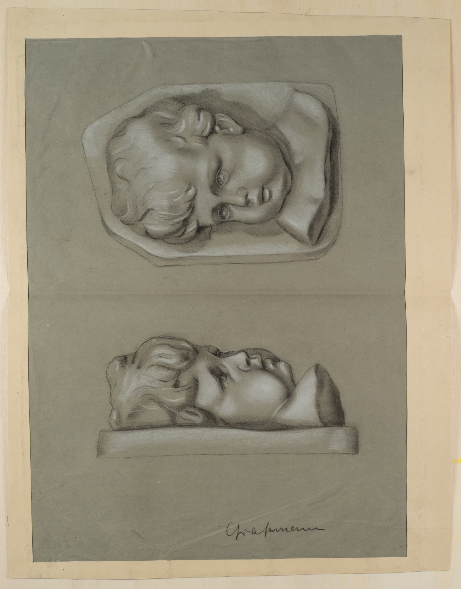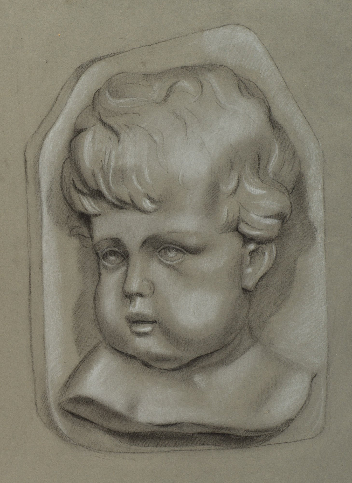 Grafmann (20th century), Practice Study of a Cherub Head in Relief, , Pencil