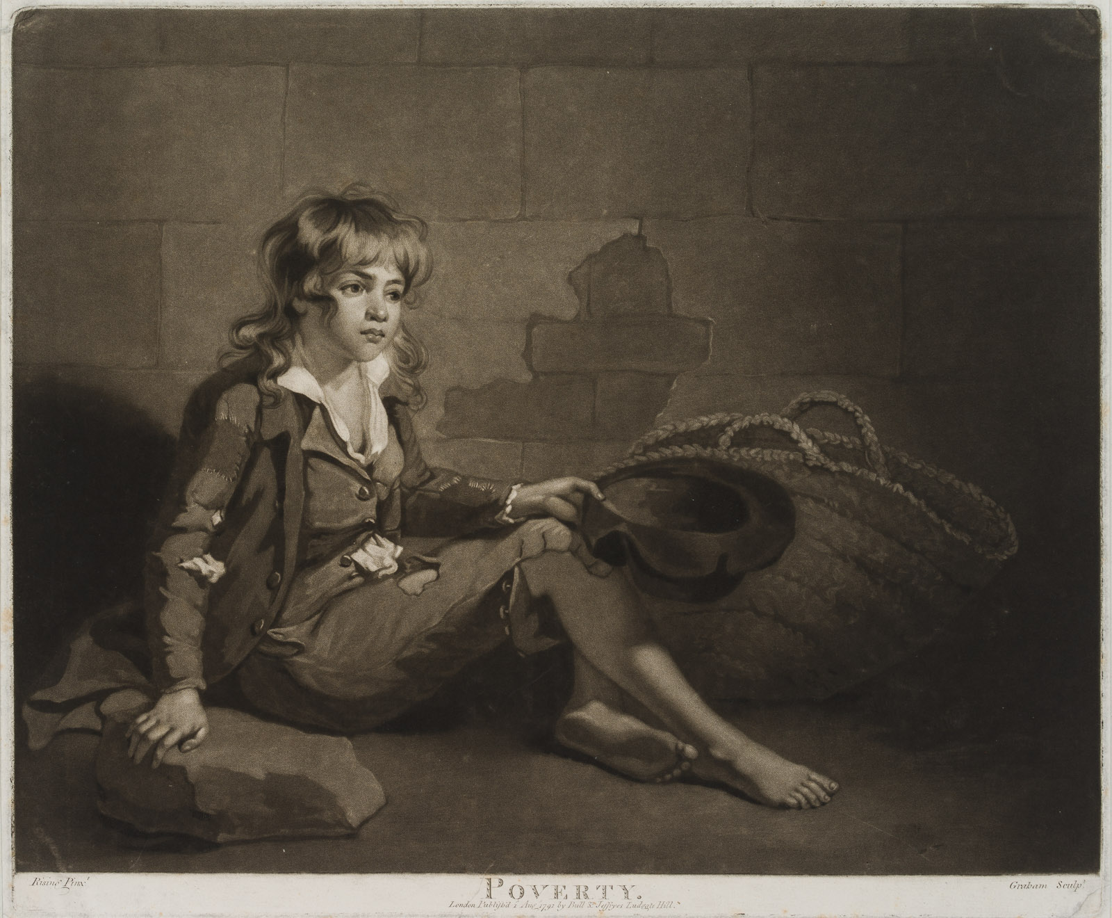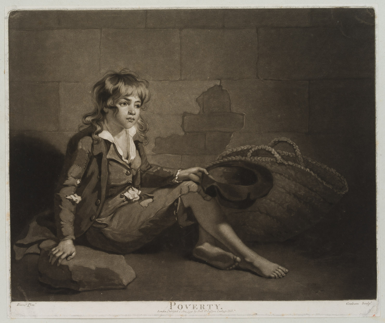 - Description: Rare sheet. Signed below the image: “Rising Pinxt. / Graham sculpt.”, below titled and with publication line: “Poverty / London, Published Aug. 1792, by Bull & Jeffryes Ludgate Hill.”