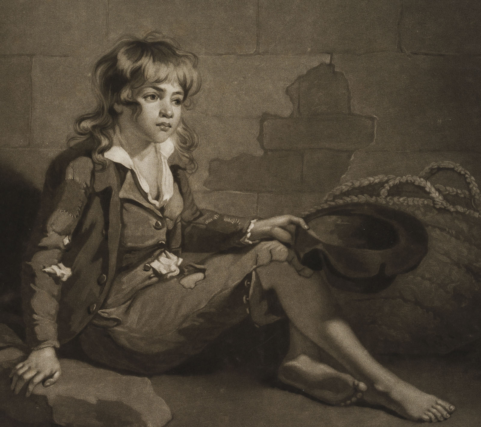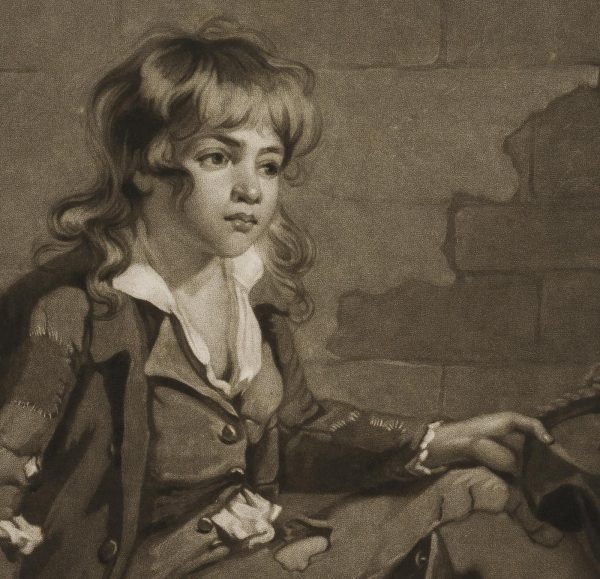 John Gilbert Graham (1794 – 1866 ) nach Rising (18. Jahrhundert), Armut, Bettelknabe an der Mauer, 1792, Mezzotinto