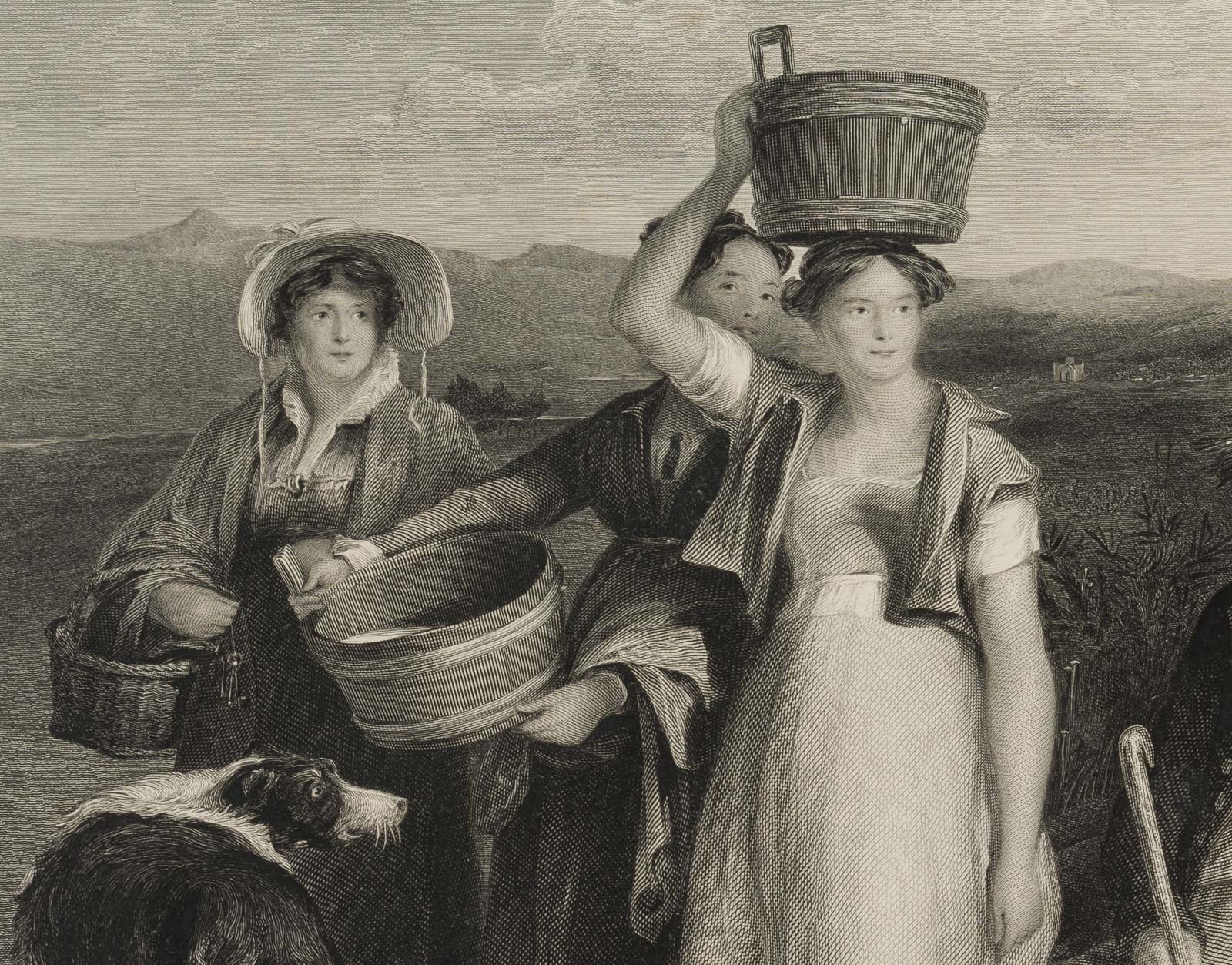 - Bezeichnung: Unten links in der Darstellung signiert und datiert “Wilkie 1817”. Unter der Darstellung signiert “Painted by Sir David Wilkie, R.A. / Engraved by Robert Graves A.R.A.”, darunter betitelt und mit Widmung an Sir Adam Fergusone Deputy / This Engraving from the Original Picture in his possession is most respectfully dedicated by his obliged obedient Servants Hodgson & Graves”. Darunter mit Publikationszeile “London Publsihed June 1837 by Hodgson & Graves , Pall Mall”.