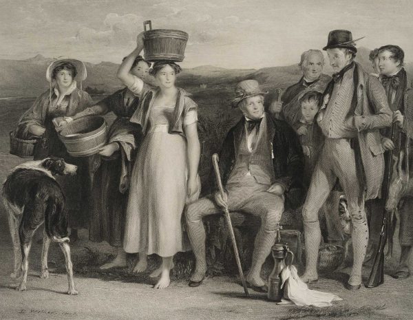 - Inscription: Unten links in der Darstellung signiert und datiert “Wilkie 1817”. Unter der Darstellung signiert “Painted by Sir David Wilkie, R.A. / Engraved by Robert Graves A.R.A.”, darunter betitelt und mit Widmung an Sir Adam Fergusone Deputy / This Engraving from the Original Picture in his possession is most respectfully dedicated by his obliged obedient Servants Hodgson & Graves”. Darunter mit Publikationszeile “London Publsihed June 1837 by Hodgson & Graves , Pall Mall”.