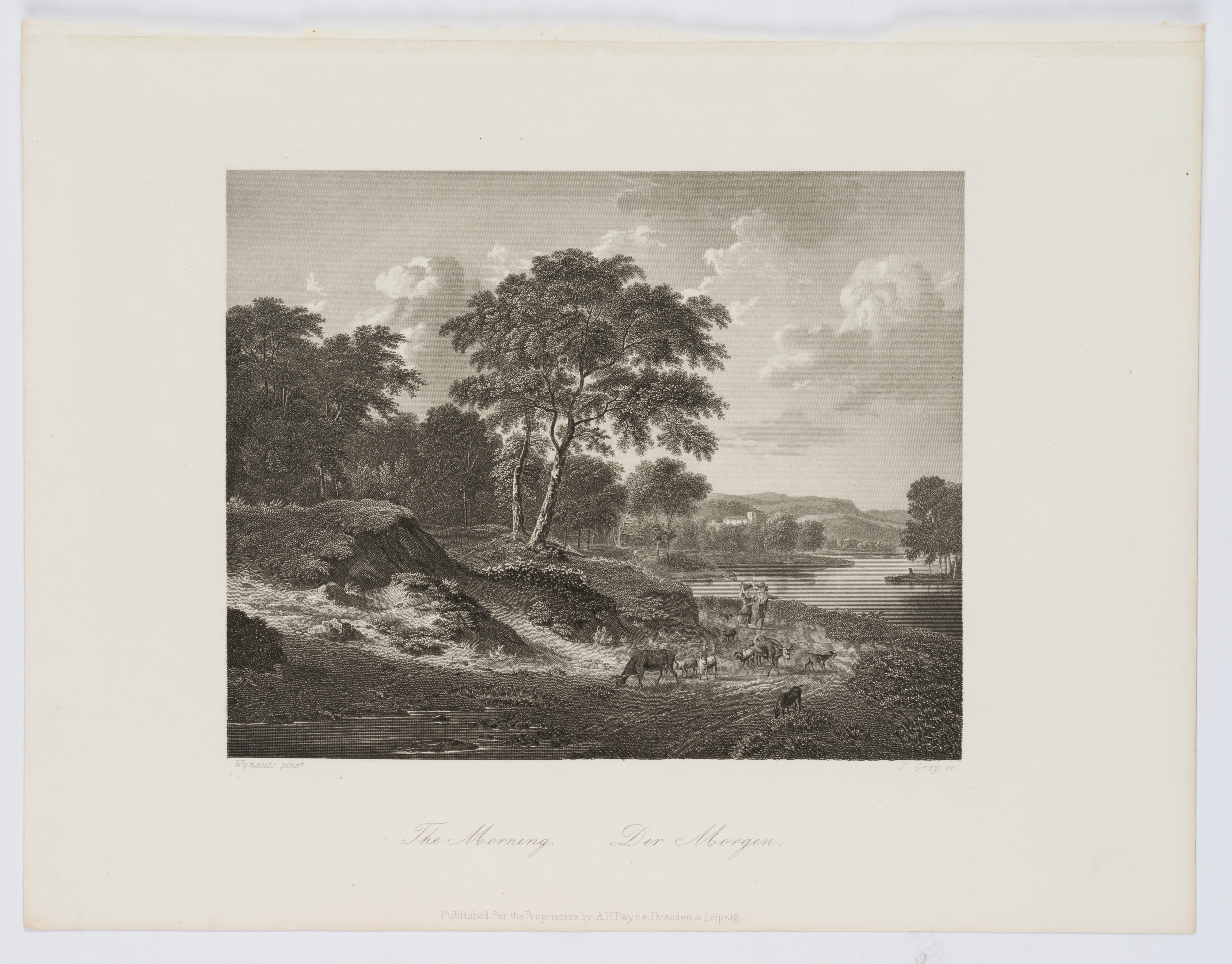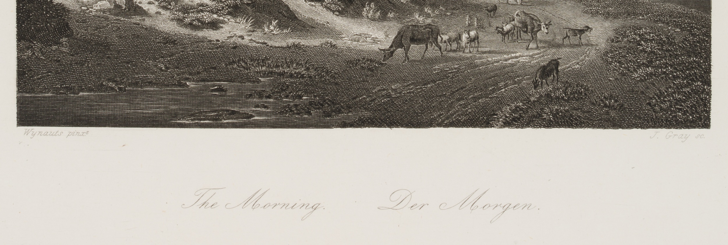 - Inscription: At the lower part signed in the printing plate: “Synants pinxt | J. Gray sc.”. At the lower part inscribed in the printing plate: “The Morning | Der Morgen”.