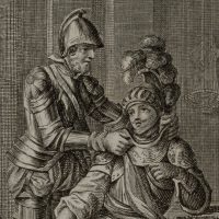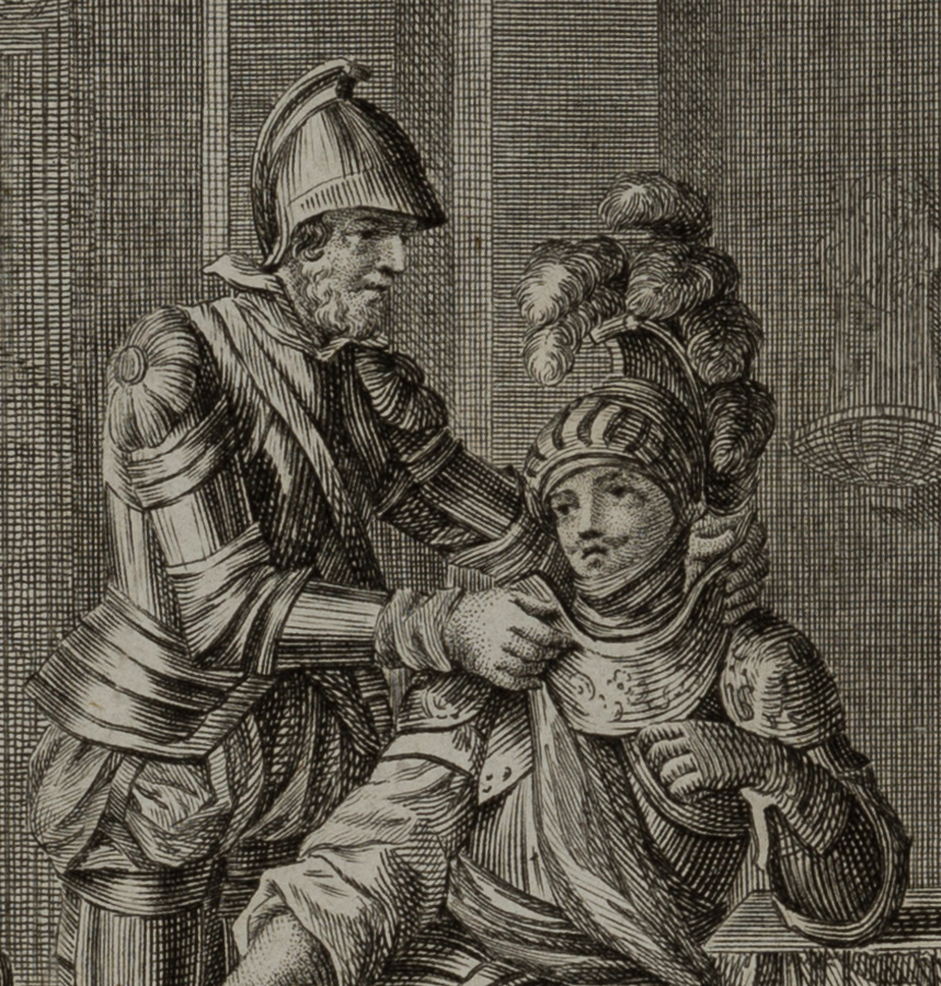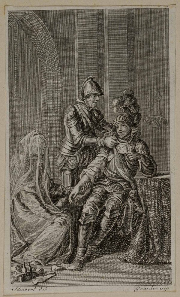 Carl Heinrich Grünler (1761 Trünzig – 1823 Leipzig) after Johann David Schubert (1761 Dresden – around 1822 ibid.), Knight with armour, Hasselmann Collection, 19th century, Copper engraving