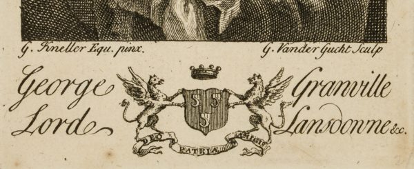 - Inscription: Signed on the left below the print “G. Kneller Equ. pinx.” and on the right “G. Vander Gucht Sculp”, inscribed below with the sitter’s name “George Granville Lorde Lansoonne”.
