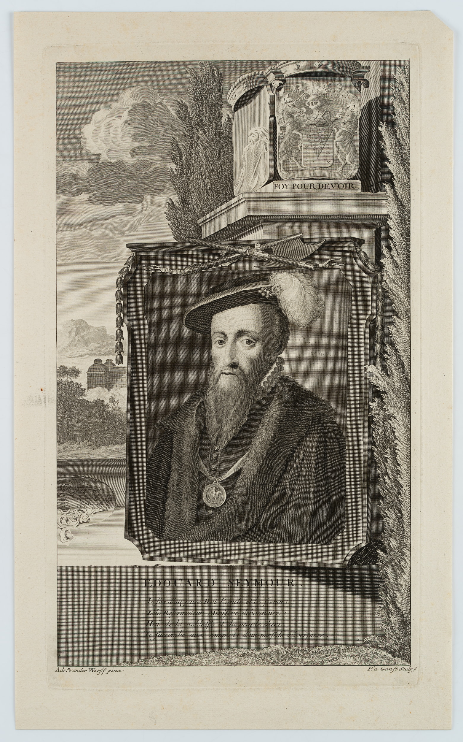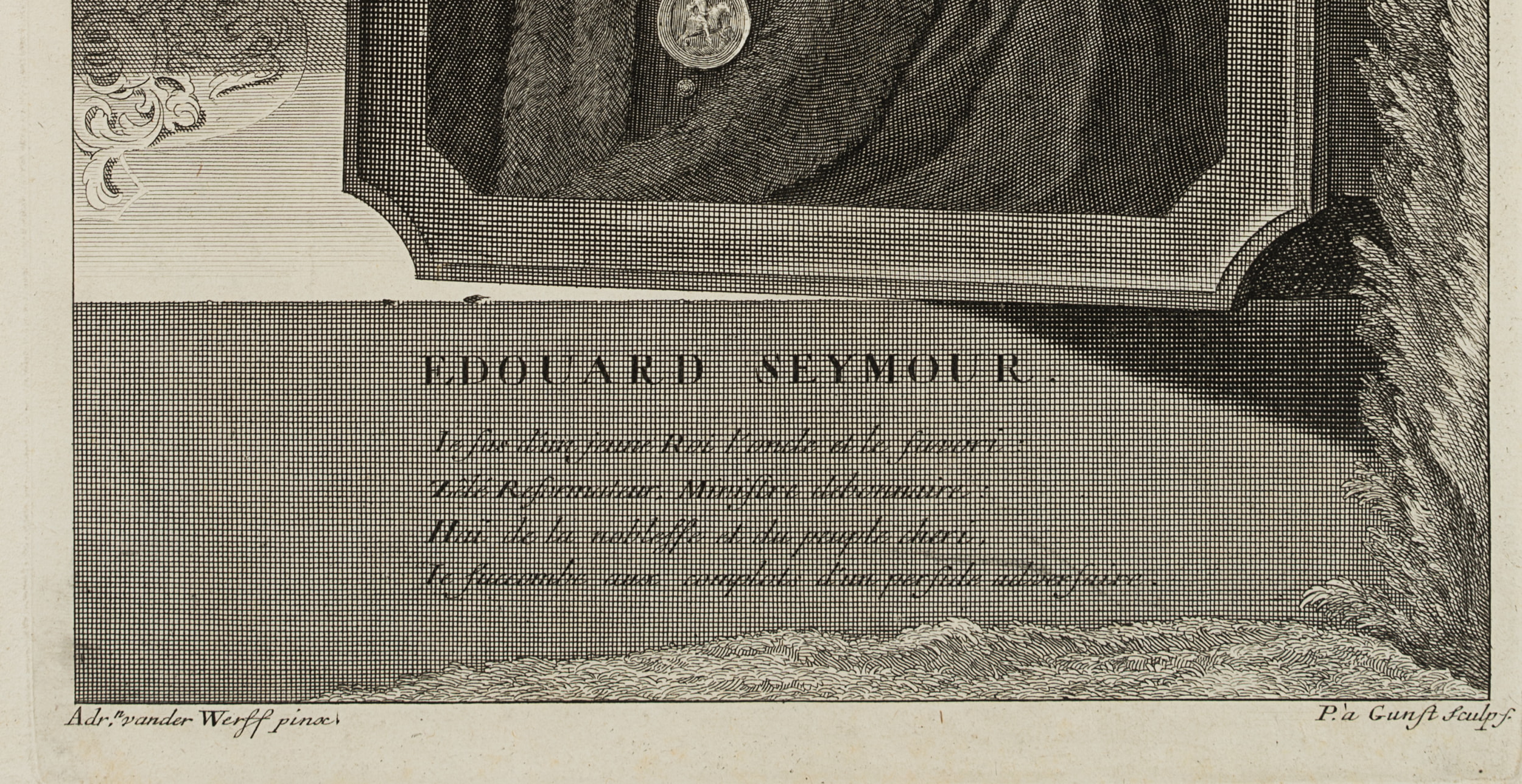 - Inscription: At the lower part signed in the printing plate: “Adr.n vander Werff pinx. / P. à Gunst sculps.”. At the lower part inscribed in the printing plate: “Edouard Seymour […]”.