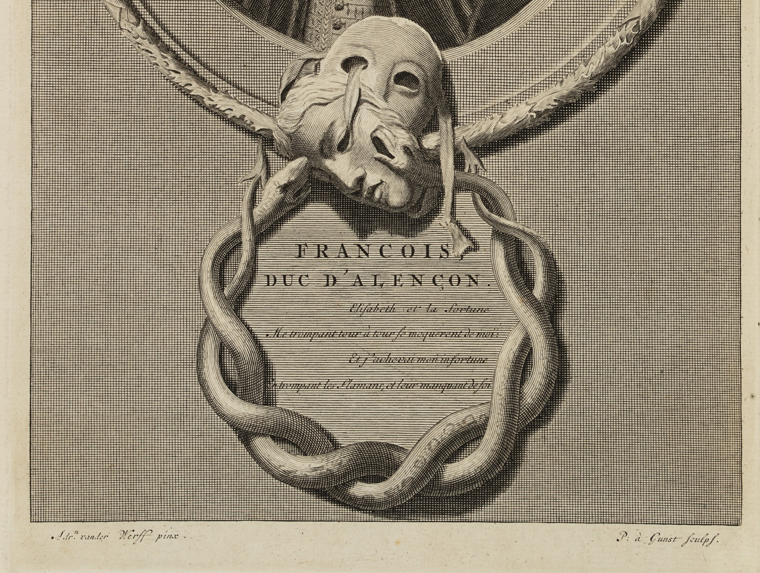 - Inscription: At the lower part signed in the printing plate: “Adr.n vander Werff pinx. / P. à Gunst sculps.”.
