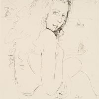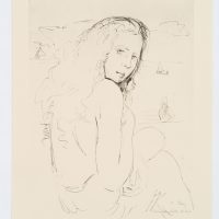 Hanni Bay (1885 Belp – 1978 Bern), Young bathers on the beach Sitting towards the sea, looking back at the viewer, c. 1927, Reproduction