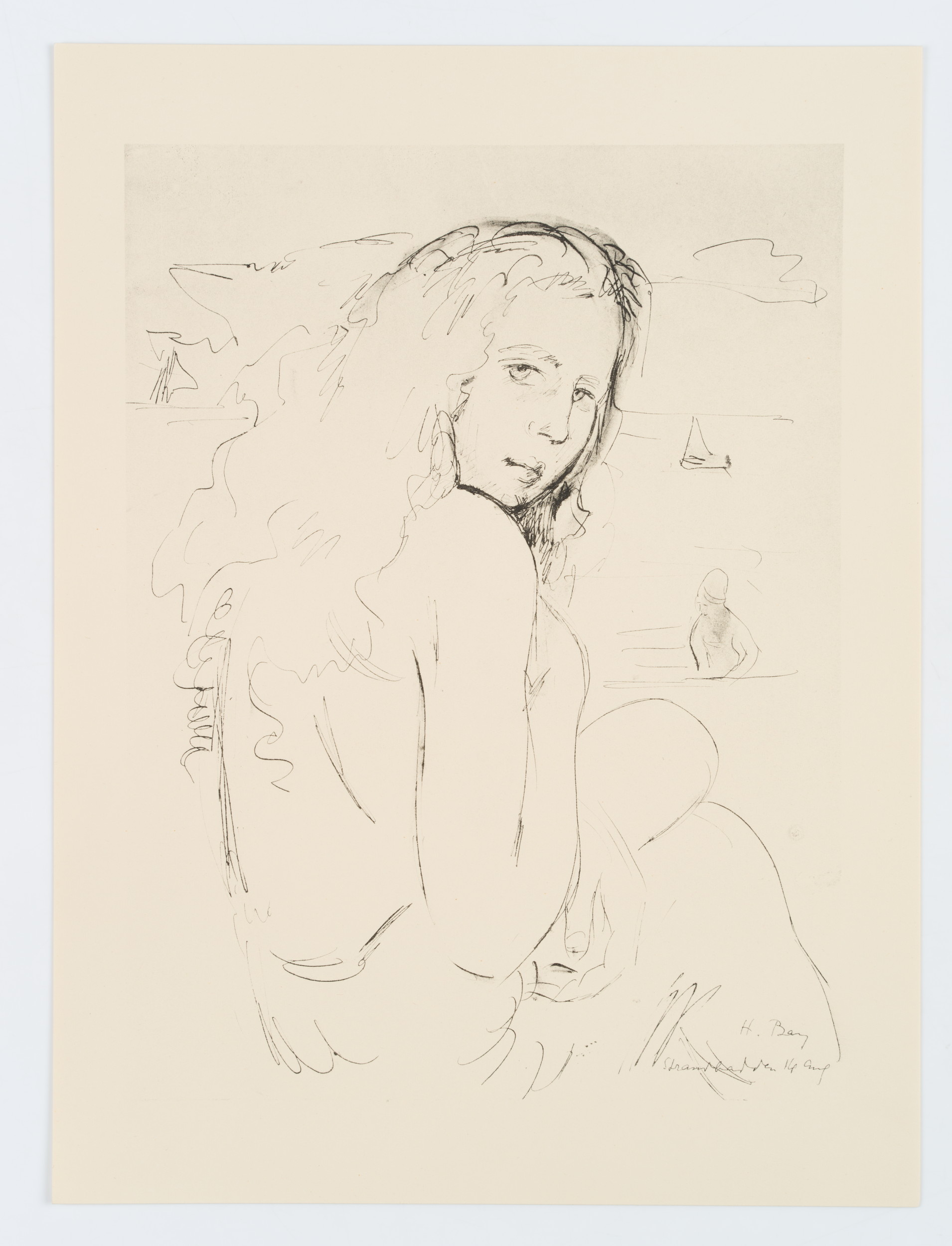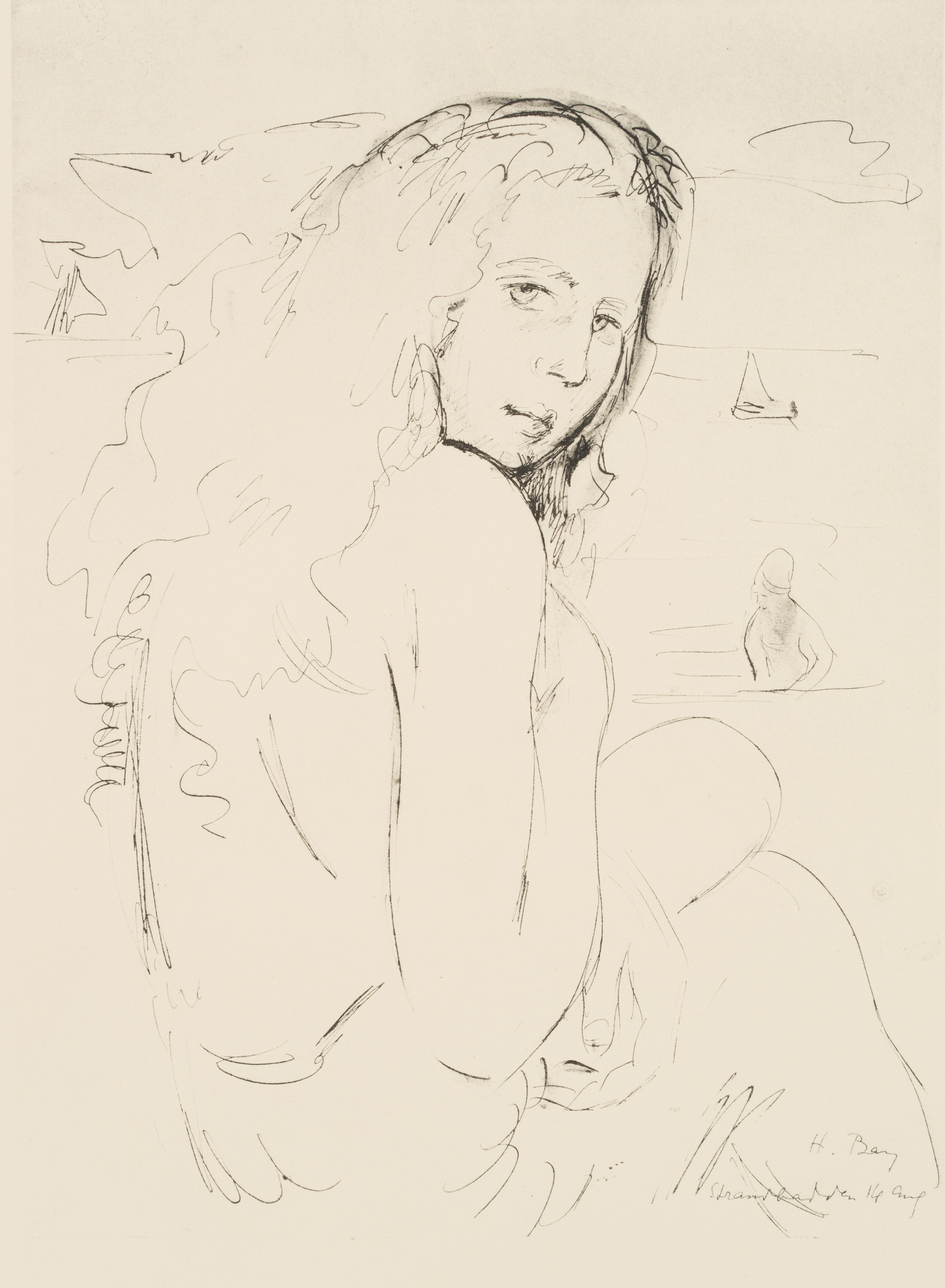 Hanni Bay (1885 Belp – 1978 Bern), Junge Badende am Strand. Sitzend zum Meer, zurückschauend zum Betrachter, um 1927, Reproduktion