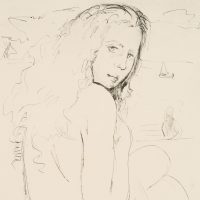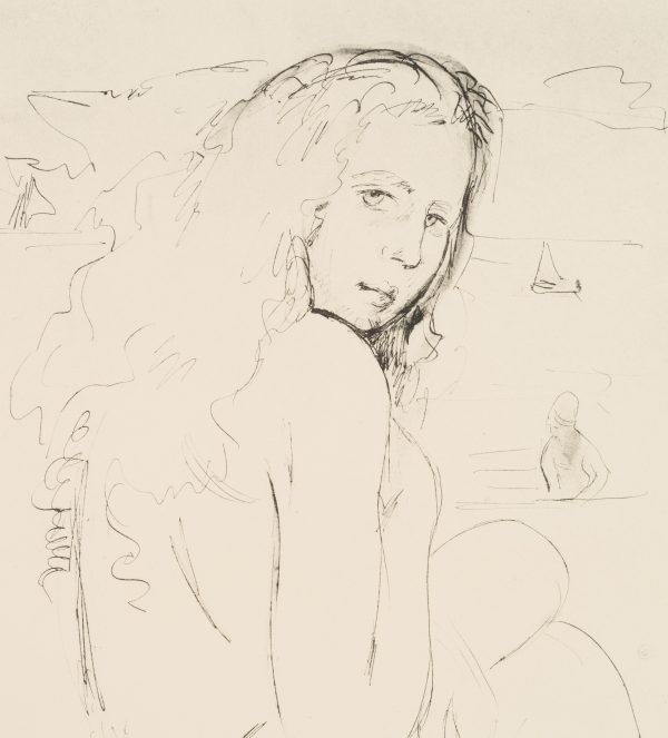 - Beschreibung: Zeichnung einer jungen Frau am Strand als Lichtdruck.